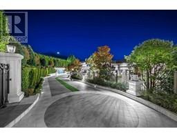 ritish Properties Estate newly completed, this house situated on a prestigious street, private, views of city & harbour and Lions Gate Bridge. This 12,967 square ft 2 level home built on a 24,746 square feet level lot. Open floor Plan, gourmet kitchen, 6 oversized ensuited bedrooms w/walk-ins, 11 baths, high ceilings, elevator, Over sized indoor and outdoor swimming pools, sauna, steam room, large level heated driveway, water feature, and 5-car parking, fire pit, park like landscaping designed by Paul Sangha and upscale home theatre! Handmade floors are Calacatta marble with wood inlay and/or metal inlay. Gourmet chef´s kitchen featuring Gaggenau appliances and wok kitchen. This home truly beyond impressive. (id:5347)