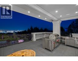 SENSATIONAL 11,159 sqft CUSTOM-BUILT HOME ON A PRIVATE & GATED 28,053 sqft LOT WITH A SPECTACULAR VIEW OF DOWNTOWN, LIONS GATE & STANLEY PARK. Too Many Features to Mention! MAIN: stunning foyer w/natural stone flring & huge fresh-water fish tank, oversized private living rm & separate dining rm off covered/heated patio w/outdr kitch/BBQ, gourmet kitch w/gorgeous wooden cabs & stunning ""crystal-ice"" granite countertops, eating nook, fab Wok kitch and office. UPPER: ""5"" large bdrms, including huge primary w/stunning en-suite, walk-in & pvt balcony, plus 4 oversized en-suited bdrms & laundry. LOWER: sensational temp/humid controlled wine cellar, huge rec rm, full bar, media rm, full spa w/steam/dry saunas, stunning en-suited guest bdrm leading to patio w/swimming pool, hot-tub & so much more. (id:5347)