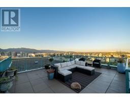 | Stunning waterfront Penthouse at Quaywest with over 2093 square ft of luxury living space. Featuring floor-to-ceiling window frames and breath-taking views of False Creek, city line and north shore mountains. Enjoy the magnificent lifestyle Yaletown has to offer! The expansive 1,337 square ft private patio with panoramic views is well suited for hosting intimate events and entertaining guests. Thoughtfully designed with elegant finishes, the home comes with A/C, 2 parking stalls, and ample storage. A 3rd bedroom can be added with light reno. Full-service amenities-concierge, indoor pool, gym, sauna, and more. Steps to the Seawall and world-class dining, this penthouse is a redefinition of luxury living in Vancouver. (id:5347) | |||