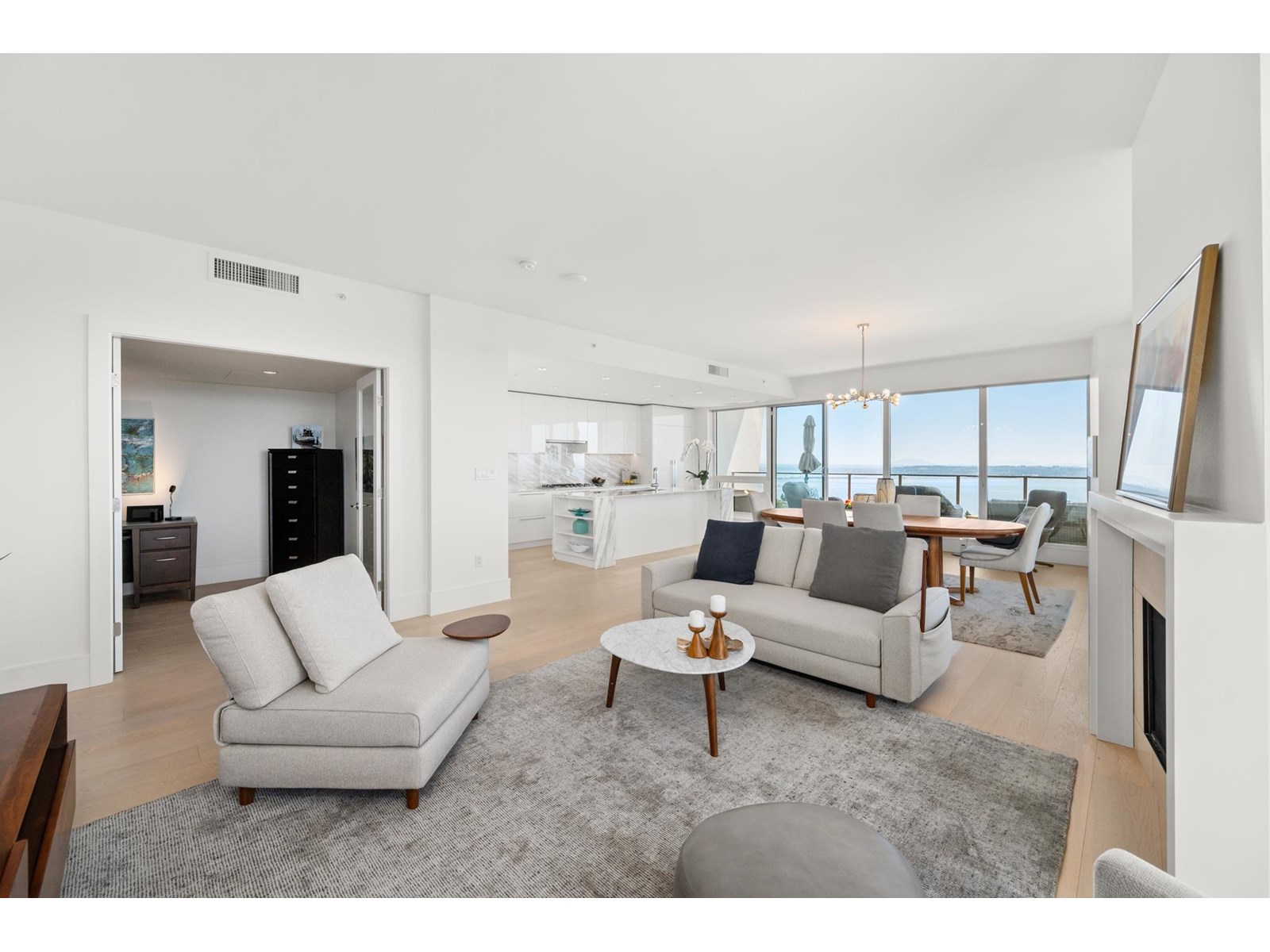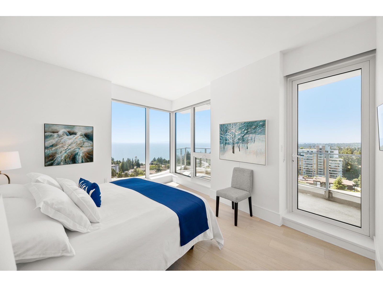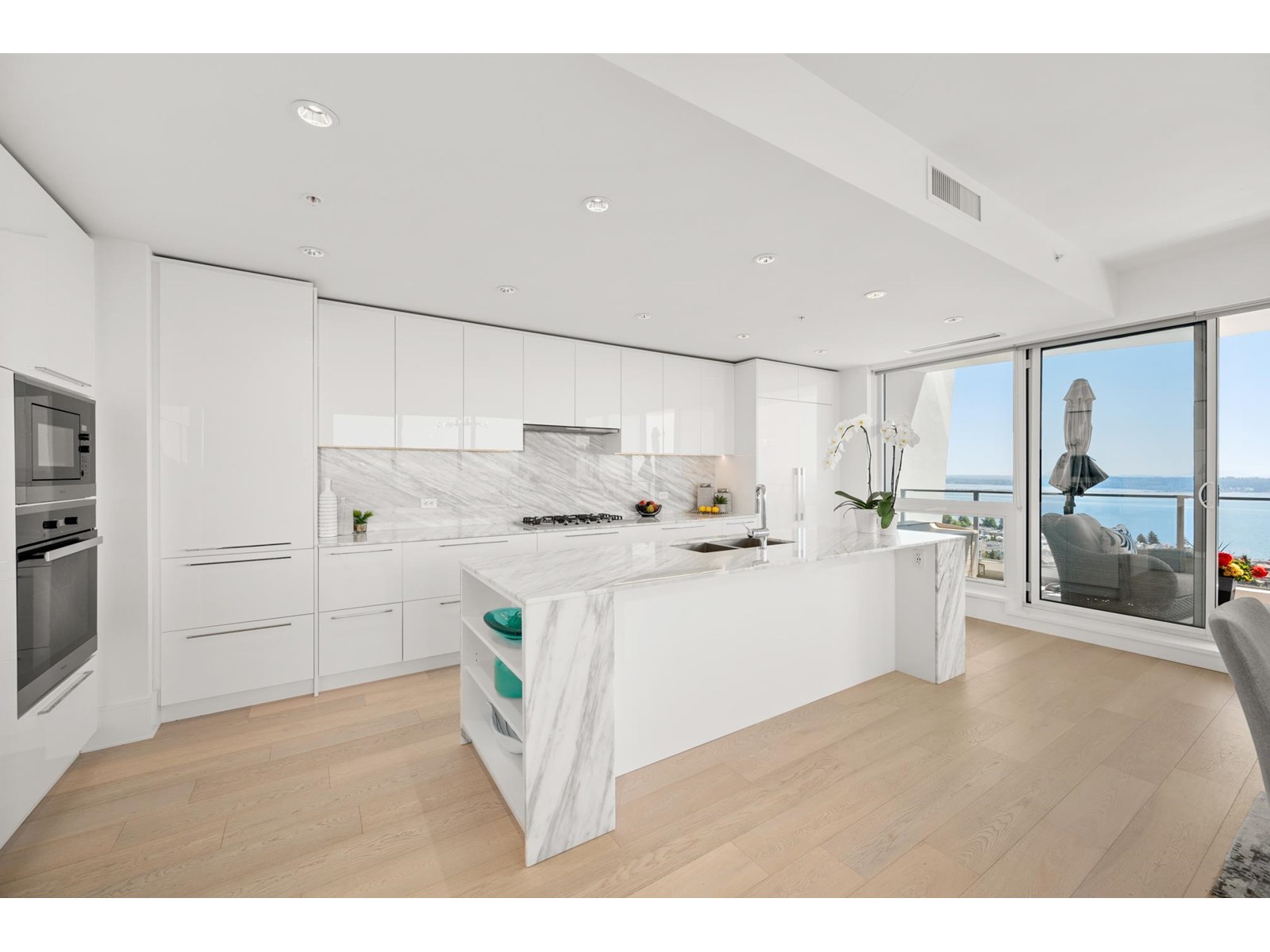 | Experience the elegance of Suite 1601 at Foster Martin, White Rock's premier luxury high-rise. Spanning 2,140 SF, this residence offers 3 bedrooms, a den, and 3.5 spa-inspired bathrooms, all framed by sweeping, unobstructed ocean views. Floor-to-ceiling windows and two expansive wrap-around balconies invite natural light. The gourmet kitchen is equipped with a Miele appliance package, complemented by light hardwood floors, sleek white cabinetry, and marble countertops. Foster Martin residents enjoy 10,000 SF of world-class amenities, including an indoor/outdoor pool, hot tub, yoga studio, steam and sauna rooms, and a full-service concierge. Steps from restaurants, shopping, and daily conveniences, this bright and sophisticated home is truly one to experience in person. (id:5347) | |||