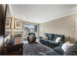 | Welcome to Monterey Grande! This rarely available TOP FLOOR 2-bed, 2-bath condo offers 1,030 sq ft of spacious living in a QUIET location. You will be greeted with an open floor plan featuring UPDATED laminate flooring & crown moldings with a large dining area open to the living room featuring a cozy gas fireplace! The oversized primary bedroom boasts double closets w/ensuite + generous second bedroom, family bathroom & laundry room with SXS washer & dryer! Enjoy your morning coffee with mountain views on your large covered deck! BONUS storage locker conveniently located right beside your unit + 1 underground secure parking spot! The well-managed building features an amenity room, bike storage & workshop. Located - close to shopping, restaurants, an off-leash dog park & future Skytrain! (id:5347) | |||