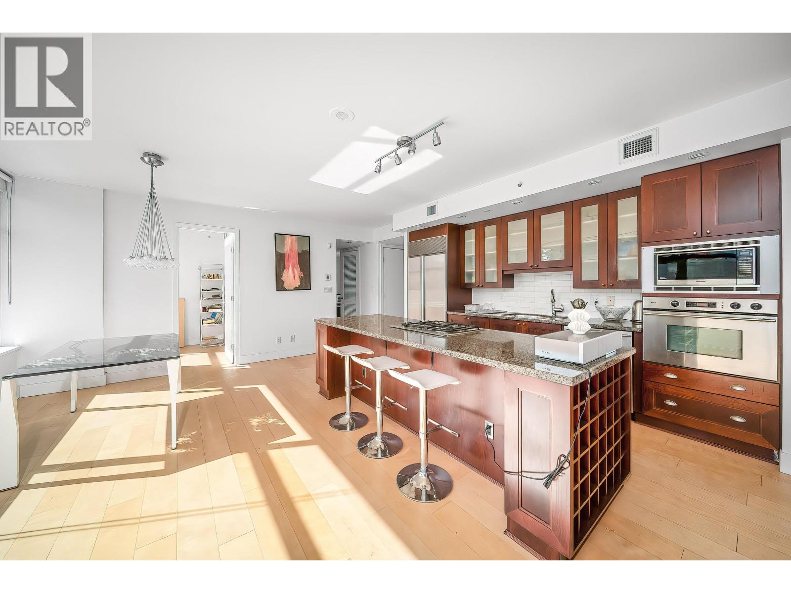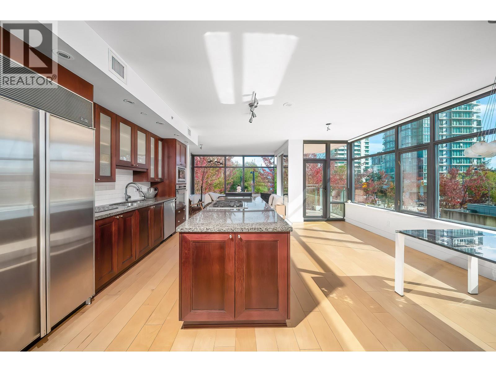 | Exclusive 70-unit building "Lumiere" with only 4 homes per floor. This bright corner suite features floor-to-ceiling windows showcasing sweeping water, mountain, park & city views. Open living/dining flows to a covered balcony. Gourmet kitchen offers black shaker cabinets, granite counters, breakfast bar with wine rack, Sub-Zero fridge & Bosch appliances. Primary bedroom enjoys full water vistas, spa-style ensuite with clawfoot tub & double-sided gas fireplace. Large den easily converts to a 3rd bedroom. Dark walnut engineered floors, central A/C, 2 parking & locker. Amenities: lounge, gym & cedar infrared sauna-all in one of Vancouver´s most coveted neighborhoods. (id:5347) | |||