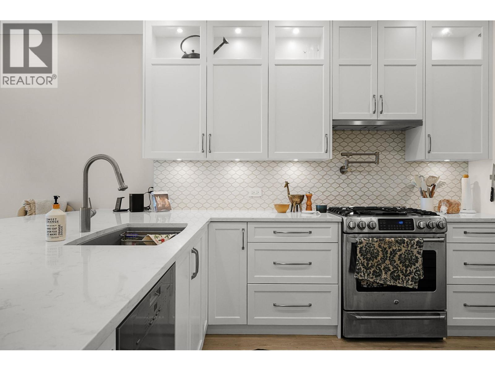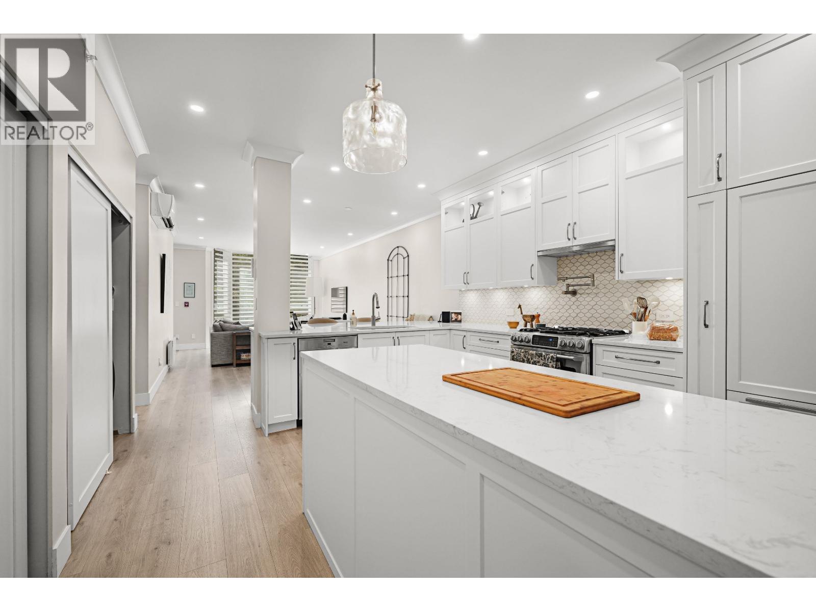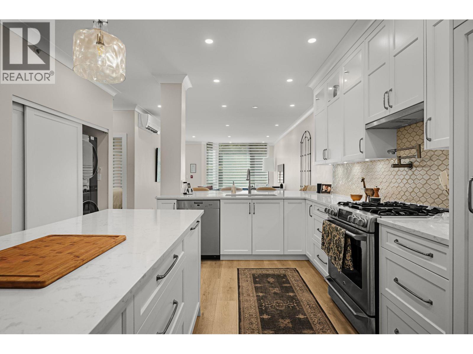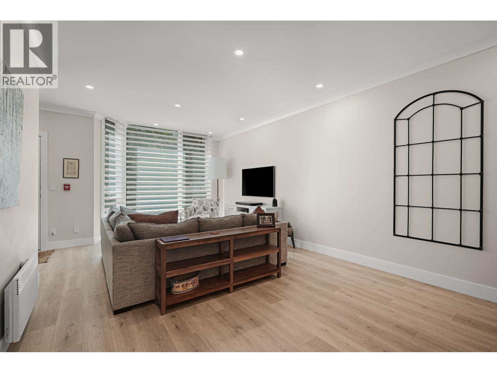 | This stunning, fully renovated townhome is sure to impress-over $300,000 spent! With 1,265 sq. ft. with 12 foot ceilings provides a bright and open living area. this home features 2 bedrooms, a den, and 2 full baths. Main Bath with steam shower. . Enjoy dual front and back entrances, wide-plank hardwood floors, and a gorgeous kitchen with full-height cabinets and one-piece marble countertops. Thoughtful upgrades include Motorized Blinds, Air Conditioning, and designer finishes throughout. Overlooking a lush, treed park, it offers a private, serene retreat. Exceptional amenities include a saltwater pool, hot tub, steam room, and squash court. Just steps to London Drugs, Fresh St. Market, and more-urban living at its best! OPEN HOUSE SATURDAY NOV 1 2025 2-4 PM (id:5347) | |||