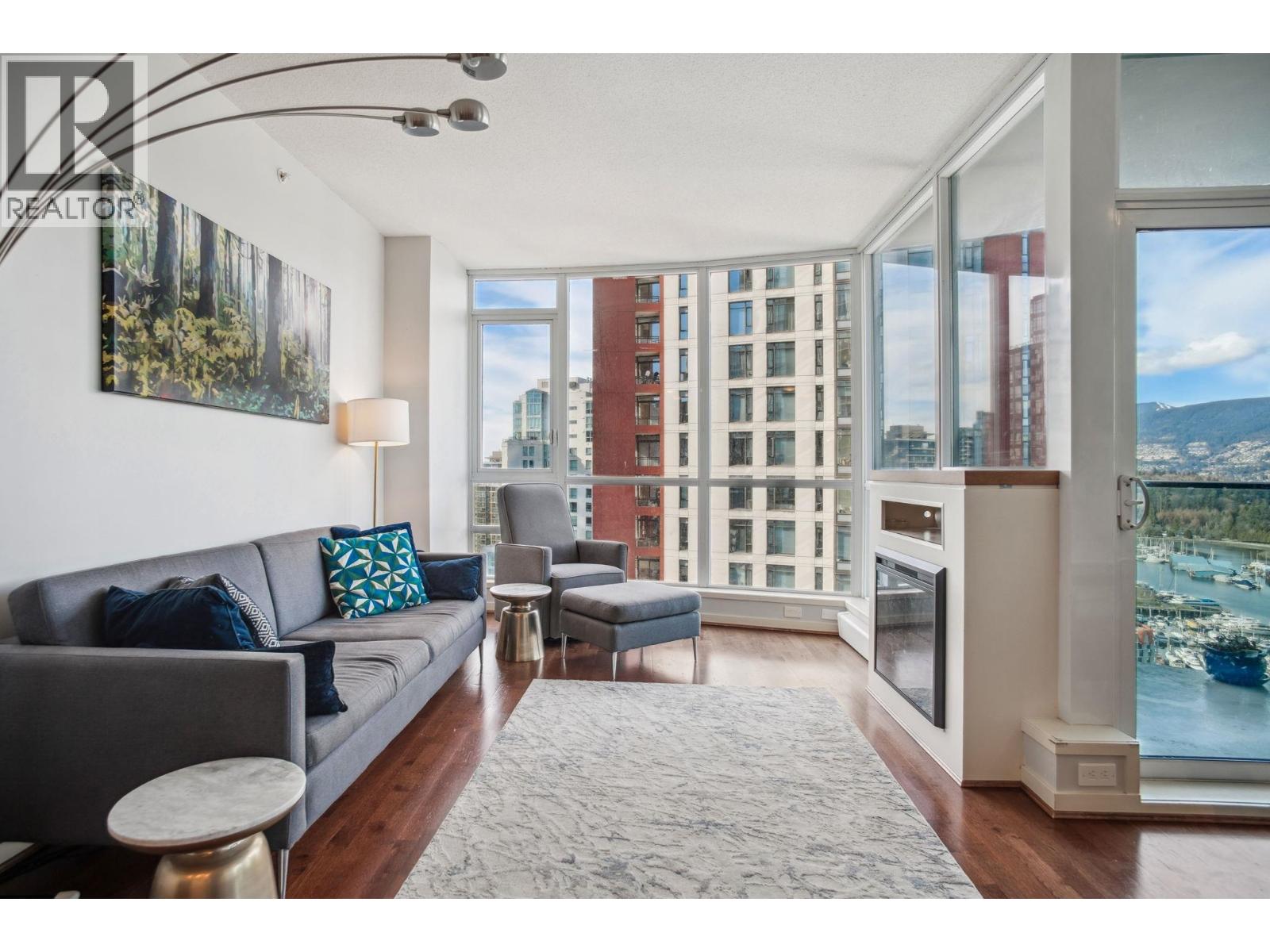 | Discover elevated living at its best, welcome to The Melville! Enjoy breathtaking corner-unit views of Coal Harbour, North Shore Mountains, Marina and DT Vancouver. Recently professionally painted, this stunning 2 bed, 2 bath home features the desirable NW corner floor plan with 9' ceilings, den and solarium. Enjoy sunsets from your beautiful outdoor patio.This impeccably designed home boasts hardwood floors, fireplace, premium full-size stainless steel appliances, granite & marble countertops with ample storage space. Includes 1 parking & 1 locker. Conveniently located to major amenities, transit, grocery stores, Stanley Park Seawall and Robson Street. Enjoy 24hr concierge & exclusive rooftop access to fitness center, hot tub, sauna, garden, bbq area &outdoor swimming pool.OH Sun 1-230pm (id:5347) | |||