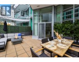 | Discover the epitome of modern living in this stunning ground-level 2-bed plus den main level entry home. Boasting impressive 14-foot vaulted ceilings and exquisite custom blackout curtains throughout, this home exudes elegance with its rich hardwood floors and two luxurious full baths, including a lavish 5-piece ensuite. The wardrobe closets are thoughtfully upgraded with custom built-ins from California Closets, maximizing both style and functionality. Step outside to your expansive nearly 500 sqft. patio, with custom faux hedging for added privacy and effortless maintenance. Located just steps from the water´s edge, the pier, and an array of delightful restaurants, this residence offers the perfect blend of convenience and tranquility. 2 parking and 1 locker included! (id:5347) | |||