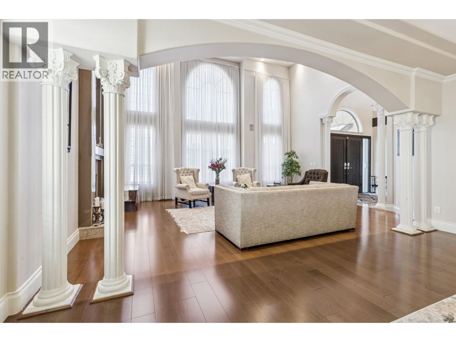 | This spectacular, solid-built mansion in East Richmond sits on nearly 2 acres and offers over 6,000 sq. ft. of beautifully updated living space with 5 bedrooms and 7 bathrooms. A grand entrance with a curved staircase opens to bright, elegant interiors filled with natural light from large windows and skylights. Features include top-quality finishes, radiant hot-water heating, high-end fixtures, a gourmet kitchen with central island, plus a separate spice kitchen and large pantry. The main floor includes a spacious private ensuite bedroom for guest, and a functional legal one-bedroom suite with separate entrance. Primary bedroom has large walk-in-closet & Spa like ensuite. Brand-new floor-to-ceiling windows overlook serene greenery and a cedar tree farm, creating a peaceful urban oasis just minutes from Vancouver, airport, and city centre. (id:5347) | |||