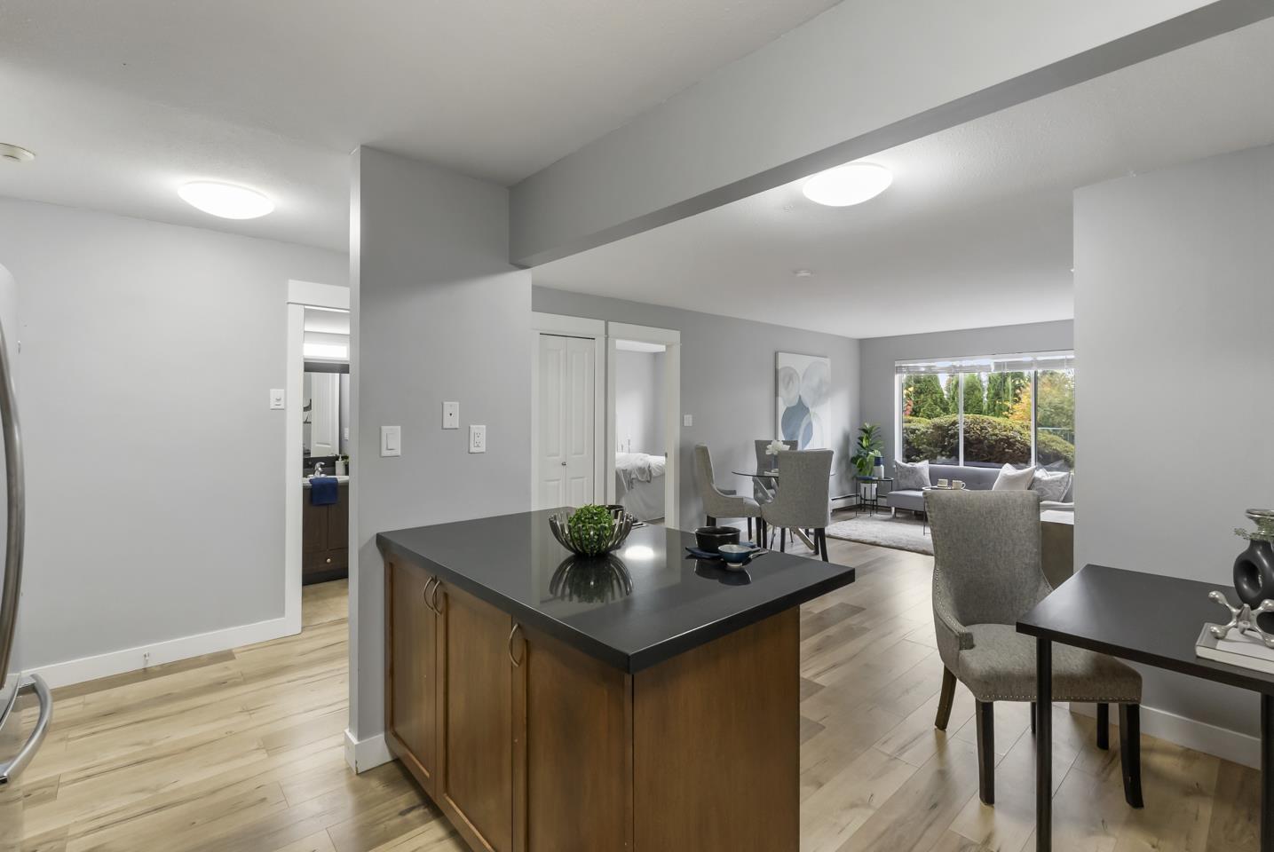 | Versatile 2BR 2BTH Abbotsford West Condo. This ground-level home is situated on the complex's quiet side w/ an outdoor patio backing onto greenery. Modern laminate flooring seamlessly lines the grand room while the kitchen boasts rich cabinetry, stainless | |||