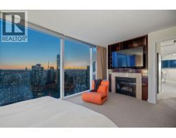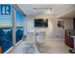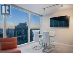 | Experience panoramic views of Vancouver's skyline and ocean from this air-conditioned 32nd-floor skyhome spanning 794 sqft with 1.5 bathrooms. Floor-to-ceiling windows flood the space with natural light and frame the breathtaking scenery, while the layout ensures comfort and functionality. The expansive primary bedroom is a private sanctuary featuring mesmerizing city views, a cozy gas fireplace, and a luxurious ensuite with a soaking tub and separate shower. Residents enjoy exclusive access to premium amenities, including a fitness centre, indoor pool, housekeeping, room service, and 24-hour concierge. Step outside and find Vancouver's finest dining, shopping, and entertainment just moments from the lobby. This exceptional home is complete with two EV-ready parking stalls and one storage. OPEN Sunday, December 21st, 2-4 (id:5347) | |||