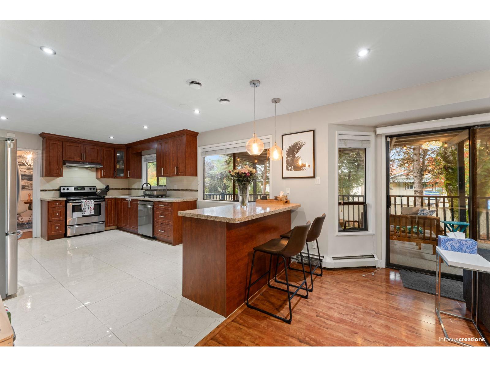 | Welcome to 8986 146A Street - a beautifully maintained family home nestled in a quiet cul-de-sac on an impressive 11,163 sq ft lot in one of Surrey's most desirable neighbourhoods. Offering over 3,100 sq ft across three well-planned levels, this home features warm wood ceilings in living, a bright updated kitchen, large formal and informal living spaces, and seamless indoor-outdoor living with a spacious covered patio overlooking a private, park-like backyard. The layout includes two separate mortgage helpers, for added monthly income. Located just minutes from Green Timbers Urban Forest, Guildford Town Centre, both levels of schools, and excellent access to future SkyTrain, Fraser Highway, and Highway 1-making commuting and daily conveniences effortless. Huge driveway and double garage. (id:5347) | |||
