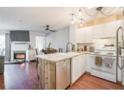 | Penthouse beauty! 716sf 1 bdrm 1 bthrm PLUS den style north facing home. 2 skylights. Great room concept with your kitchen overlooking your dng and lvg rm. Kitchen has a breakfast bar, lots of cabinets and granite countertops. Livingroom has a gas f/p and access to your private deck. Primary bedroom has a wi closet + another closet, cheater ensuite w/has an oversized shower w/tile surround & granite c/tops. The den has sliders to your balcony. Laundry area is huge and open w/cabinets & counterspace. Bright home on the quiet side of the building. 2 parking spots, 1 storage locker. Close to transit, shopping, restaurants, Willowbrook and more. (id:5347) | |||