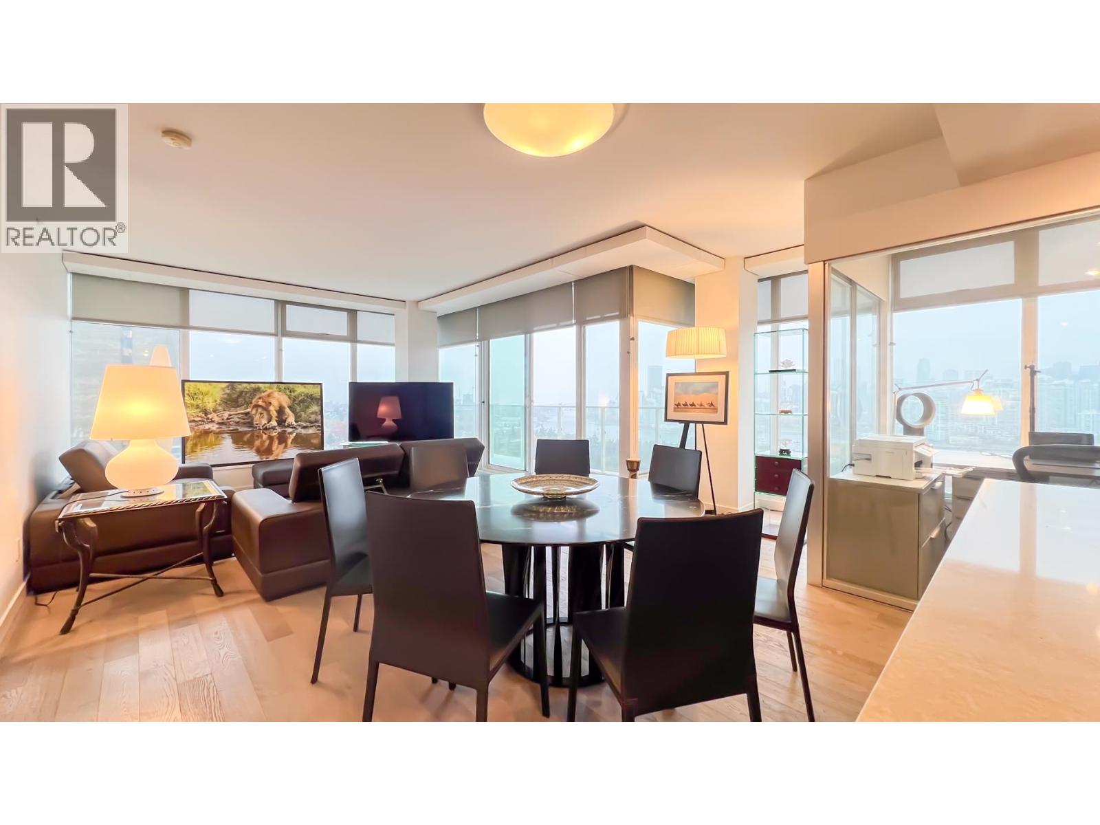 | Excellent view and location, well-maintained luxurious suite with over 1,500 square feet featuring 3 bedrooms plus den, solarium & 2 bathrooms NW facing corner unit with stunning 180 degree unobstructed views of False Creek, North Shore mountains & the downtown. Gourmet kitchen, contemporary finishing, oak hardwood flooring & geothermal heating/cooling system. Two bathrooms has Nu-Heat heating flooring. Minutes to Canada Line, VGH, restaurants & banks. Owner has paid extra to buy three storage lockers and four parking spots, three of them has EV charging, all doors been changed and upgraded, three bedrooms floor changed from carpet to hardwood flooring, new sub zero fridge. All measurements, floor plan, video, photos by Almond Tree Media Inc. https://my.matterport.com/show/?m=B4E9YJEKQDW (id:5347) | |||