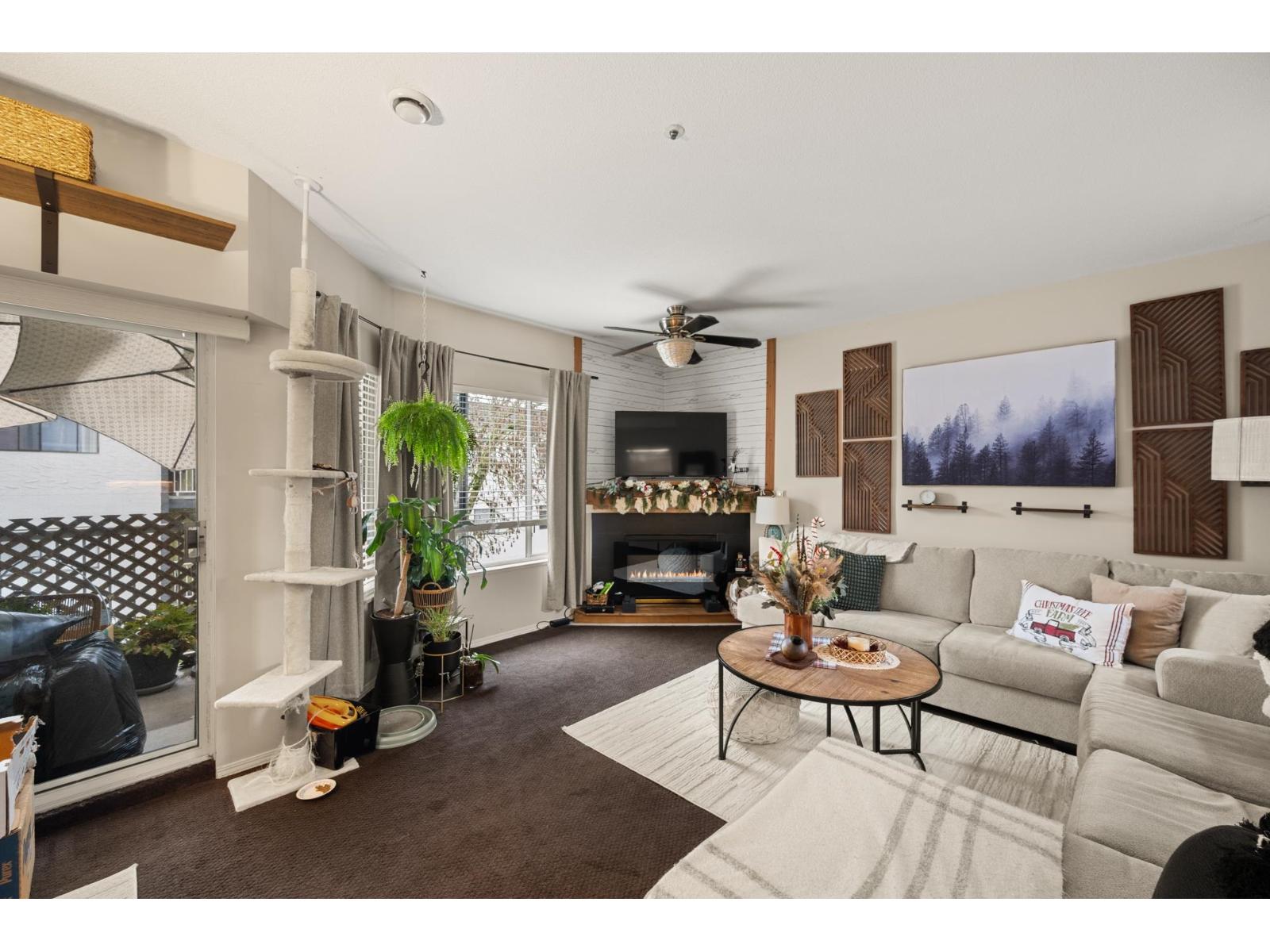 | Bright corner-unit 2 bed, 2 bath condo in Langley City with two balconies and abundant natural light. The spacious primary bedroom is currently partitioned with a temporary curtain for an extra sleeping space. Features an open layout with large windows, a | |||