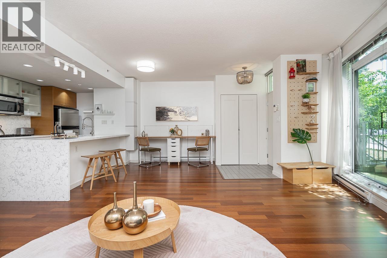 | Welcome to this rarely available waterfront townhouse built by Concord Pacific in the prestigious Coopers Pointe community-offering an exceptional blend of luxury, privacy, and vibrant waterfront living. This spacious 2-bedroom, 2.5-bath residence features an entrance facing the water, allowing seamless indoor-outdoor flow. Located directly across from Coopers Park, with False Creek, Science World, and the seawall just steps away. Enjoy relaxing or entertaining on your 105 sq. ft. private patio surrounded by lush greenery. Interior highlights include a gourmet kitchen with granite countertops, breakfast bar, gas cooktop, and stainless-steel appliances. 2 parkings (#108 & #109) and storage locker (#19). (id:5347) | |||