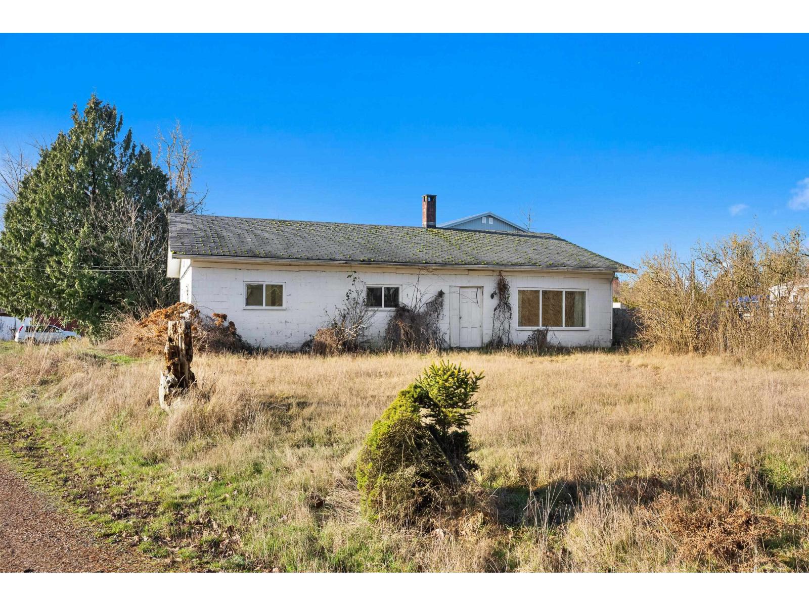 | 5.42 ACRES ideal for your DREAM HOME! Easy access to Fraser Highway & 16 Avenue. 182 feet wide x 1303 feet deep. This partly cleared property awaits your ideas! RU-3 Rural zoning in the ALR. Nearly 1500 SQ/FT 3 bedroom rancher built w/ solid concrete block construction on slab. Older barn / shop. Lovely walkable treed area at back, very natural "park-like" setting. Drilled well apporx. 160 feet, has good water. Natural gas at the street. OFFERED NEARLY $450,000 BELOW BC ASSESSMENT VALUE. Zoning allows for new home, secondary home (approx. 970 sq/ft), barn / shop and additional farming uses. Elevations may make it feasible for walkout basement. Room for your toys and trucks, legally park 3 commercial vehicles. (id:5347) | |||
