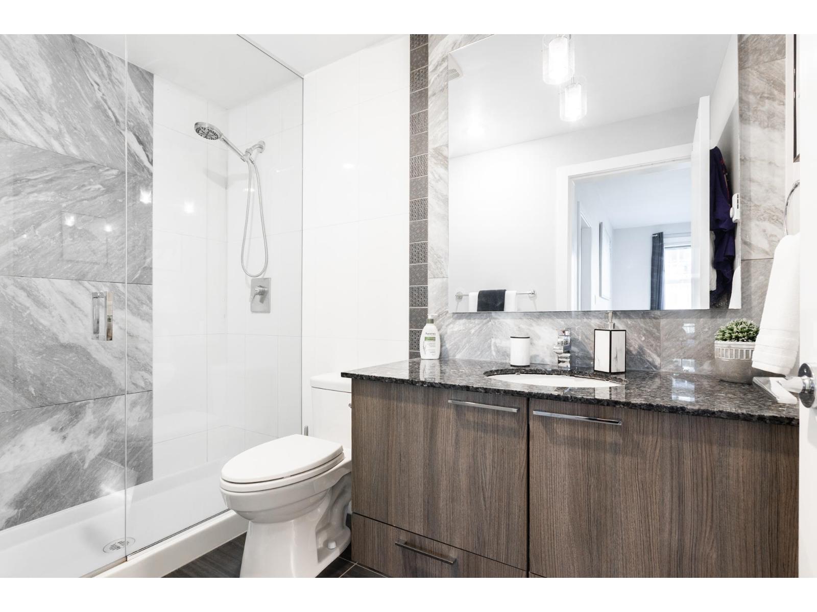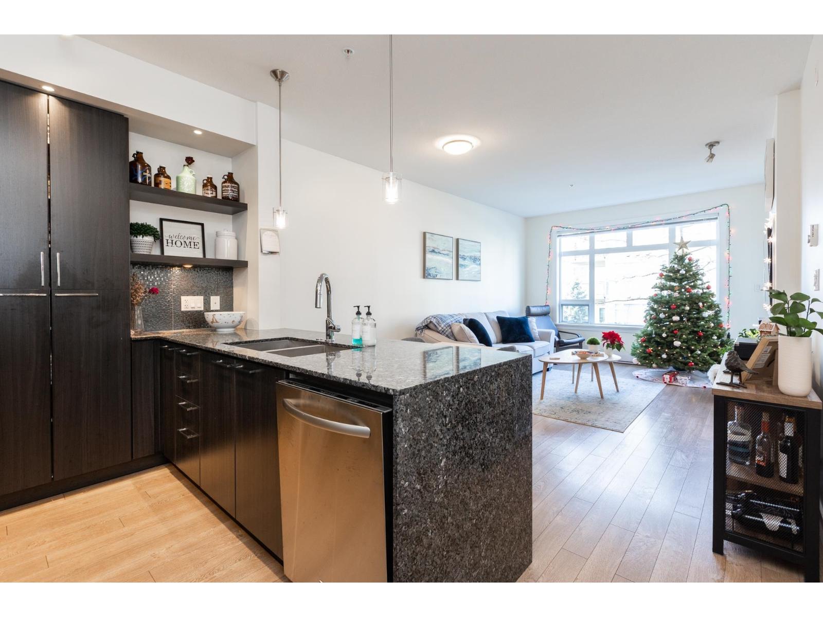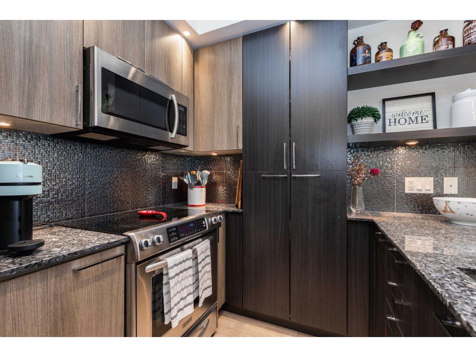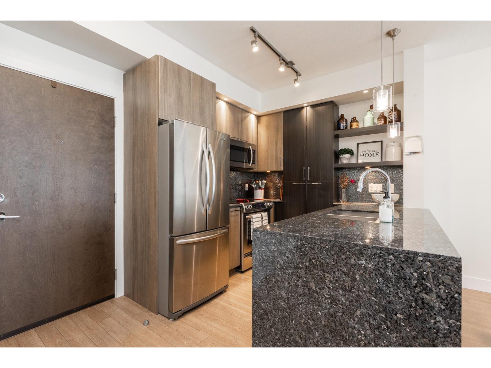 Elements, Willoughby's fabulous complex centrally located close to all amenities & allows you to reduce your carbon footprint. Two generous sized BDRMS, primary has walk in closet with custom built-ins. Open concept layout with sleek cabinets, quartz coun