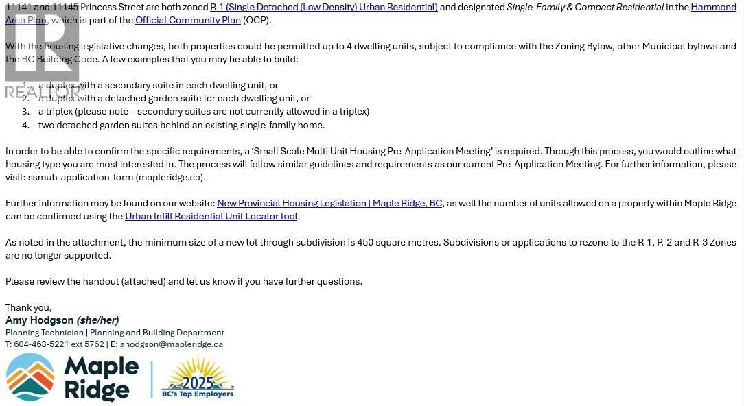 | Corner lot! 5352 sf lot with your opportunity to create! Zoned R-1. Close to the Golden Ears Bridge, West Coast Express, all levels of schools, Ridge Meadows Hospital, transit, shopping, restaurants, nature trails/parks. Southwest Maple Ridge. Flat, easy accessible. (id:5347) | |||