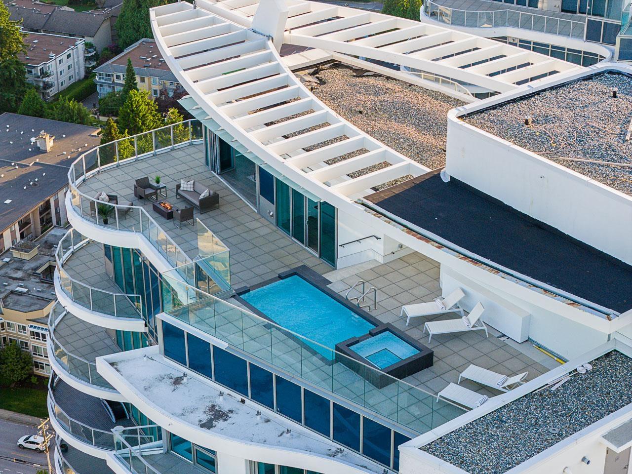 | Experience the pinnacle of seaside-urban living in this 2-story Penthouse at White Rock's Foster Martin. Stunning 3,800 sqft residence features 4 spacious bedrooms, 5.5 baths, a den, flex area and an upper loft suite. Revel in the panoramic ocean and mountain views, soaring 11' ceilings, floor-to-ceiling windows, a chef's kitchen with Miele appliances, spa-like baths, and luxurious finishings throughout. Enjoy 2,400 sqft of outdoor living with 4 main floor balconies and a spectacular rooftop deck with cascading waterfall hot tub and pool, fire table area, and outdoor kitchen rough-in. Includes a private triple garage with storage and resort-style amenities: indoor/outdoor pool, sauna/steam room, gym, lounge, games room and concierge. The perfect harmony of luxury, location, and lifestyle! (id:5347) | |||