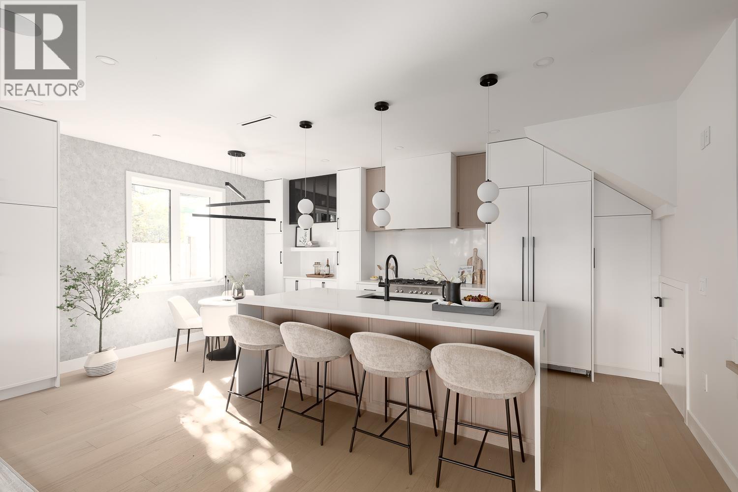 | Front 1/2 duplex in desirable South Granville offering over 2,000sf, 4 bedrooms & 3.5 baths across expansive 3 levels. Designed to live like a detached home with a spacious island kitchen, full dining area & expansive living space. Eclipse doors open to a | |||