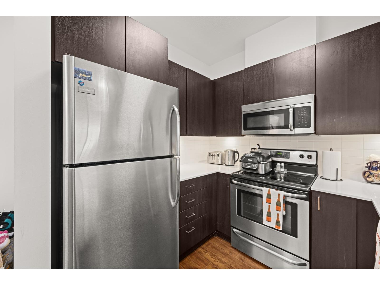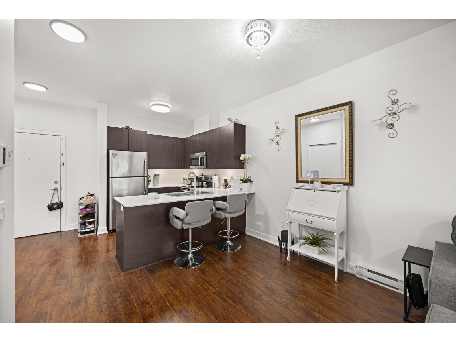 | Welcome to Serenade - where downtown Langley living meets effortless style. This beautifully updated top-floor 1 bedroom, 1 bathroom home is filled with natural light and offers an open-concept layout perfect for modern living. The gourmet kitchen feature | |||
