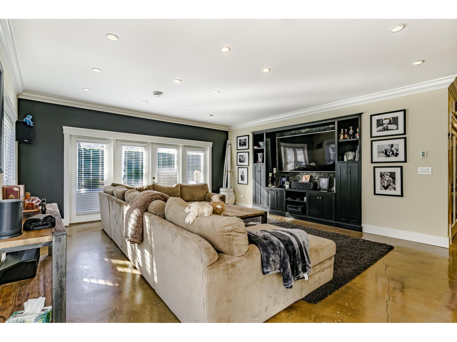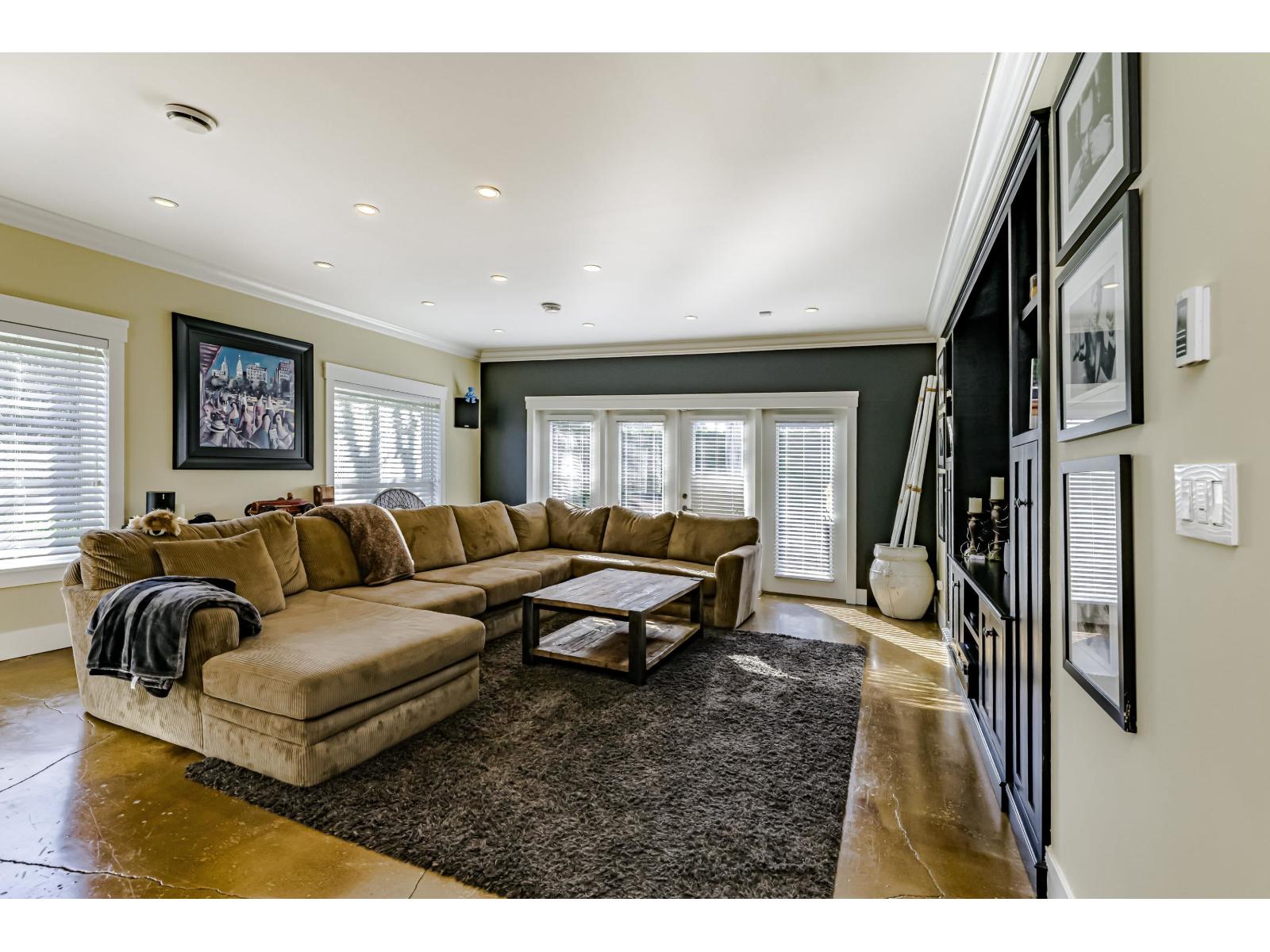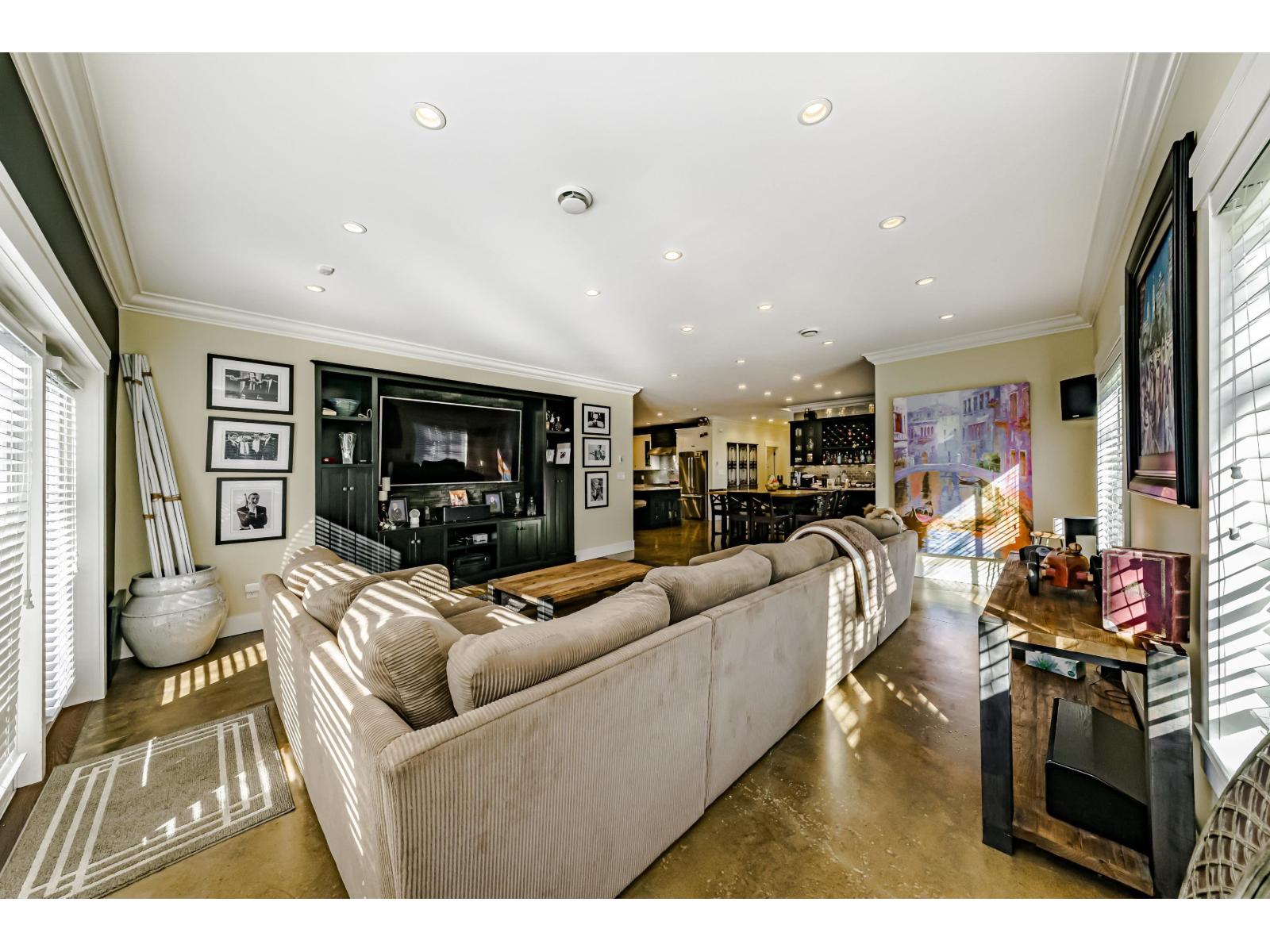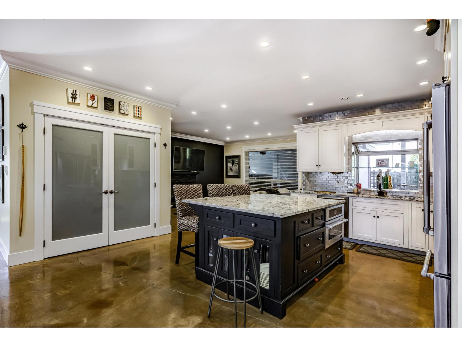 | This 2,500 sq. ft. custom rancher sits on an 8,070 sq. ft. landscaped lot on a private road across from Northview Park. Fully renovated with high-end finishes, the home features 9-ft. ceilings, polished epoxy concrete floors, over 90 recessed lights, custom millwork, and built-in furniture throughout. The chef's kitchen boasts a 6-piece Jenn-Air appliance package, wet bar, and large pantry. Modern upgrades include radiant heating, tankless hot water, heat recovery system, A/C, new roof, EV charger, and surround sound wiring. The primary suite offers a see-through fireplace and a luxurious 5-piece ensuite. The backyard is an entertainer's dream with a huge deck, BBQ station, and Italian brick pizza oven. A rare opportunity to own a luxury single-level home in sought-after Fraser Heights. (id:5347) | |||