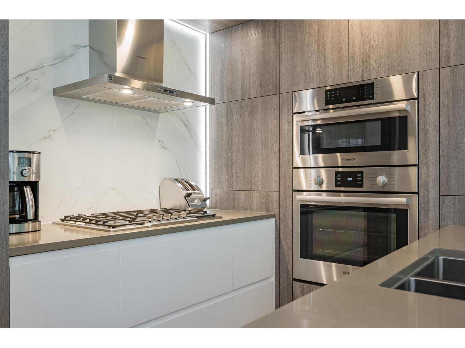 | Breathtaking Ocean & Park Views at MIRAMAR VILLAGE built by BOSA! This bright, modern, WELL-BUILT 2-bedroom, 2-bath home offers luxury living in a prime White Rock location. This unit features Italian cabinetry, Bosch appliances, engineered hardwood floor | |||