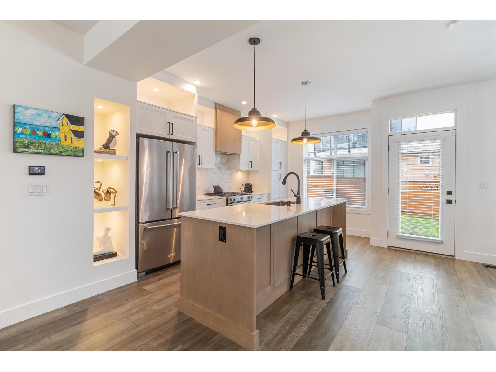 | Duplex-style END UNIT townhome with 4 beds & 4 baths next to the greenbelt in prime East Abbotsford. The main floor features an open kitchen, large dining area, family & living rooms with a fireplace, and access to a fenced yard. Upstairs, the spacious pr | |||
