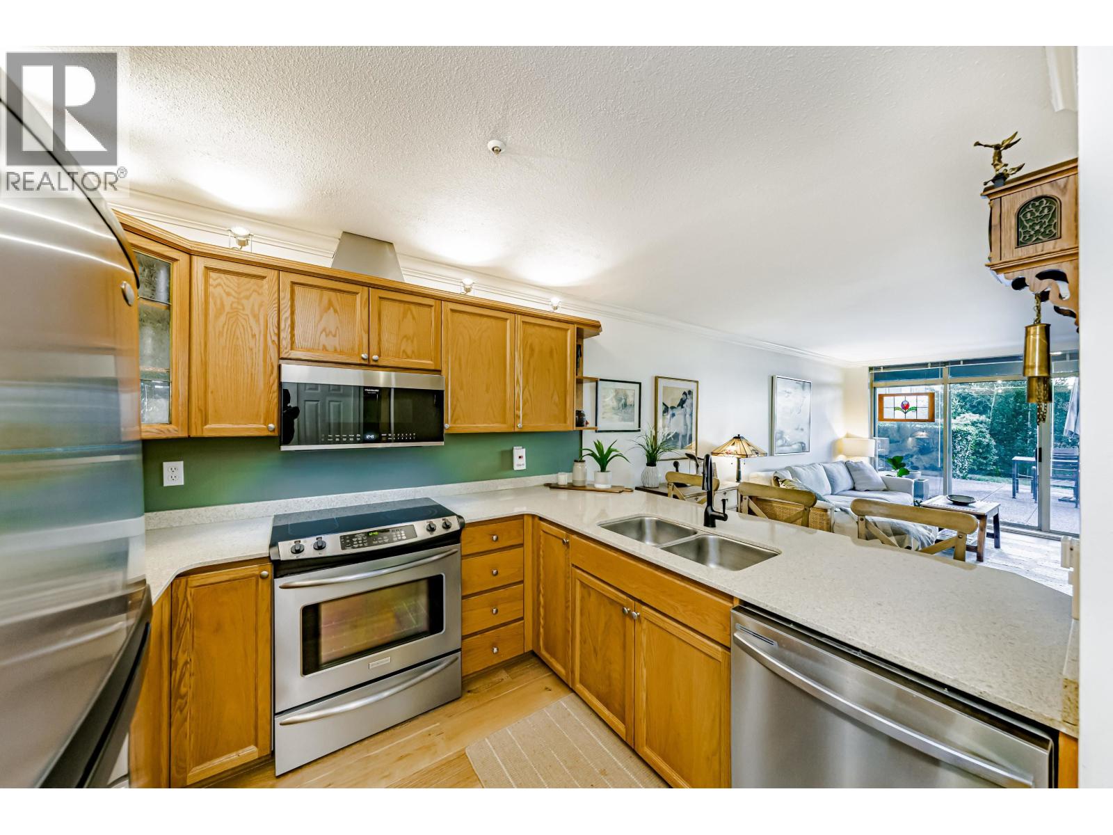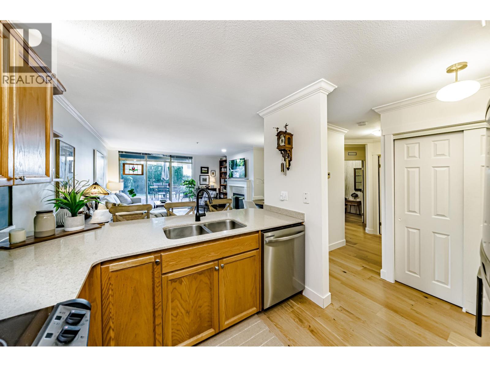 | Spacious & rarely available GARDEN LEVEL suite with LARGEST PATIO in the complex overlooking lovely landscaping with peak-a-boo river, castle & mountain views! Recently updated 1 Bed & Den (currently being used as a bedroom) & 1 Bath, 880 sf "move in ready" suite with updated SS appliances, Silestone counters in kitchen & bath, HARDWOOD flooring throughout, updated lighting, new paint & more. Huge 400 square ft sunny garden patio perfect for entertaining, BBQ or pets. Extremely proactive strata with recent major upgrades such as: Rainscreened (2000), Re-piped (2019), updated common areas & ROOF REPLACED in 2023. Great location walking distance to transit, walking/bike trails, shopping, parks, schools & new Aquatics Center! 1 parking stall & HUGE storage locker included. Pets & Rentals OK. BONUS Level 1 charging! Open House Saturday Jan 31st, 1 to 4 pm & Sunday Feb. 1st 1 to 3:30 pm. (id:5347) | |||