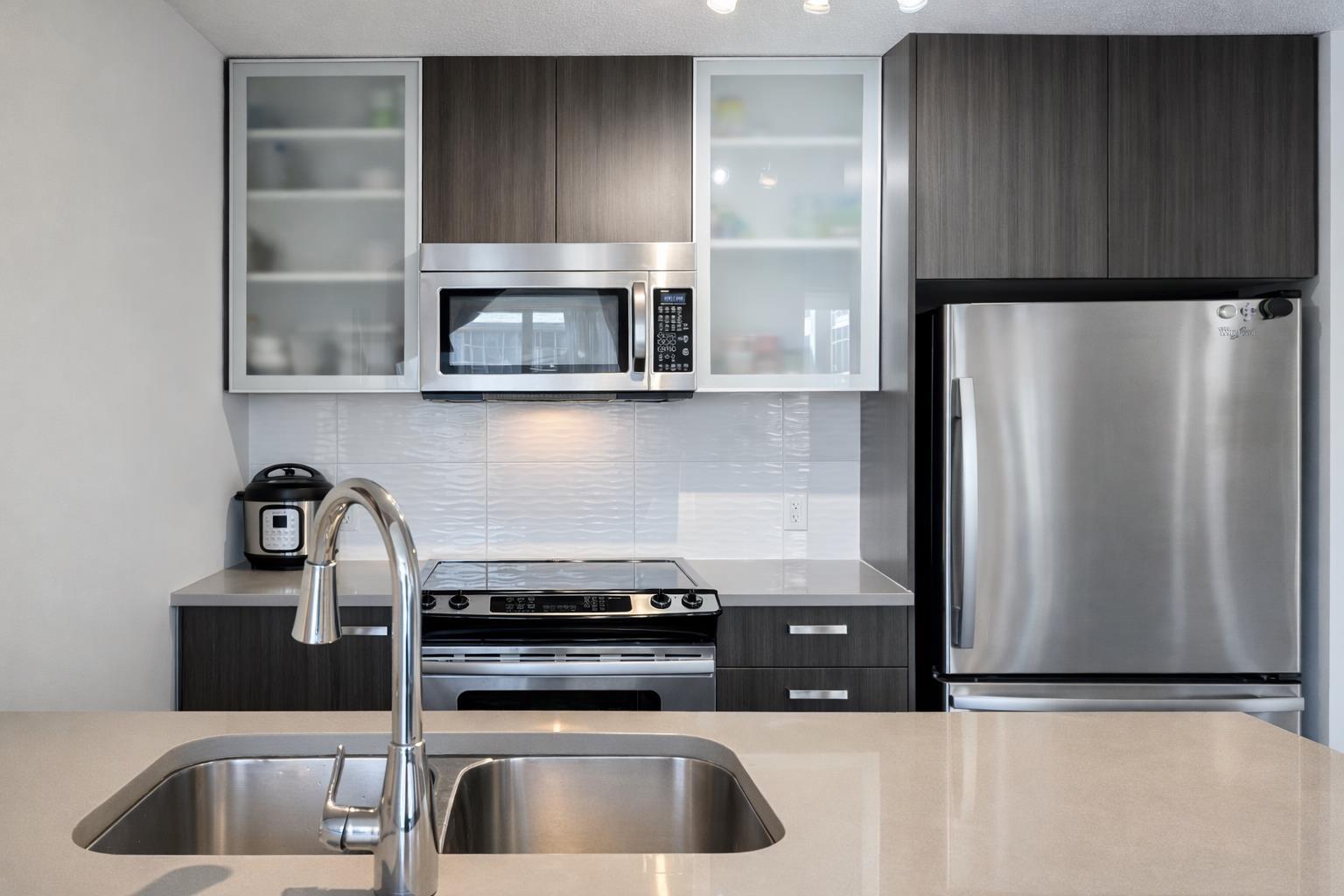 | Prime Location at ULTRA! This bright 607 sq.ft east-facing 1-bedroom unit offers excellent value in Surrey's most dynamic neighborhood. Modern features include quartz countertops, stainless steel appliances, and laminate flooring. Enjoy in-suite laundry, | |||