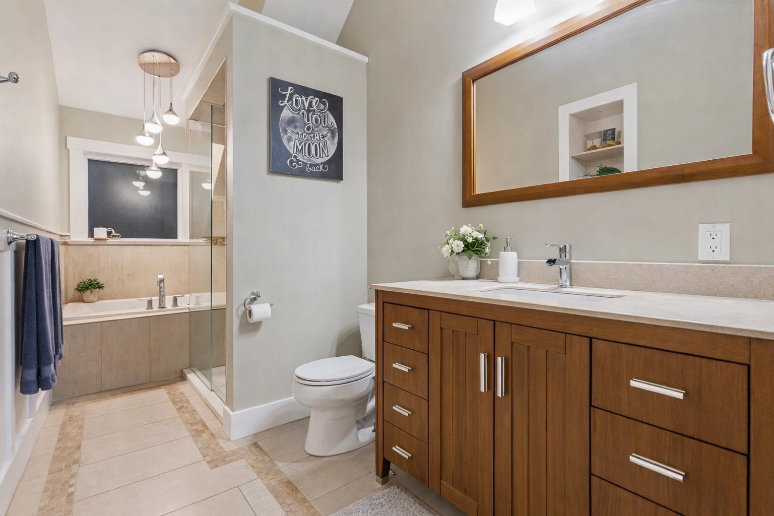 | One-of-a-kind, beautifully updated Whistler-inspired home on a large, prime corner lot in the heart of Brookswood. A welcoming front veranda sets the tone for this warm, character-filled home featuring refinished hardwood floors, crown moldings, and a spa | |||