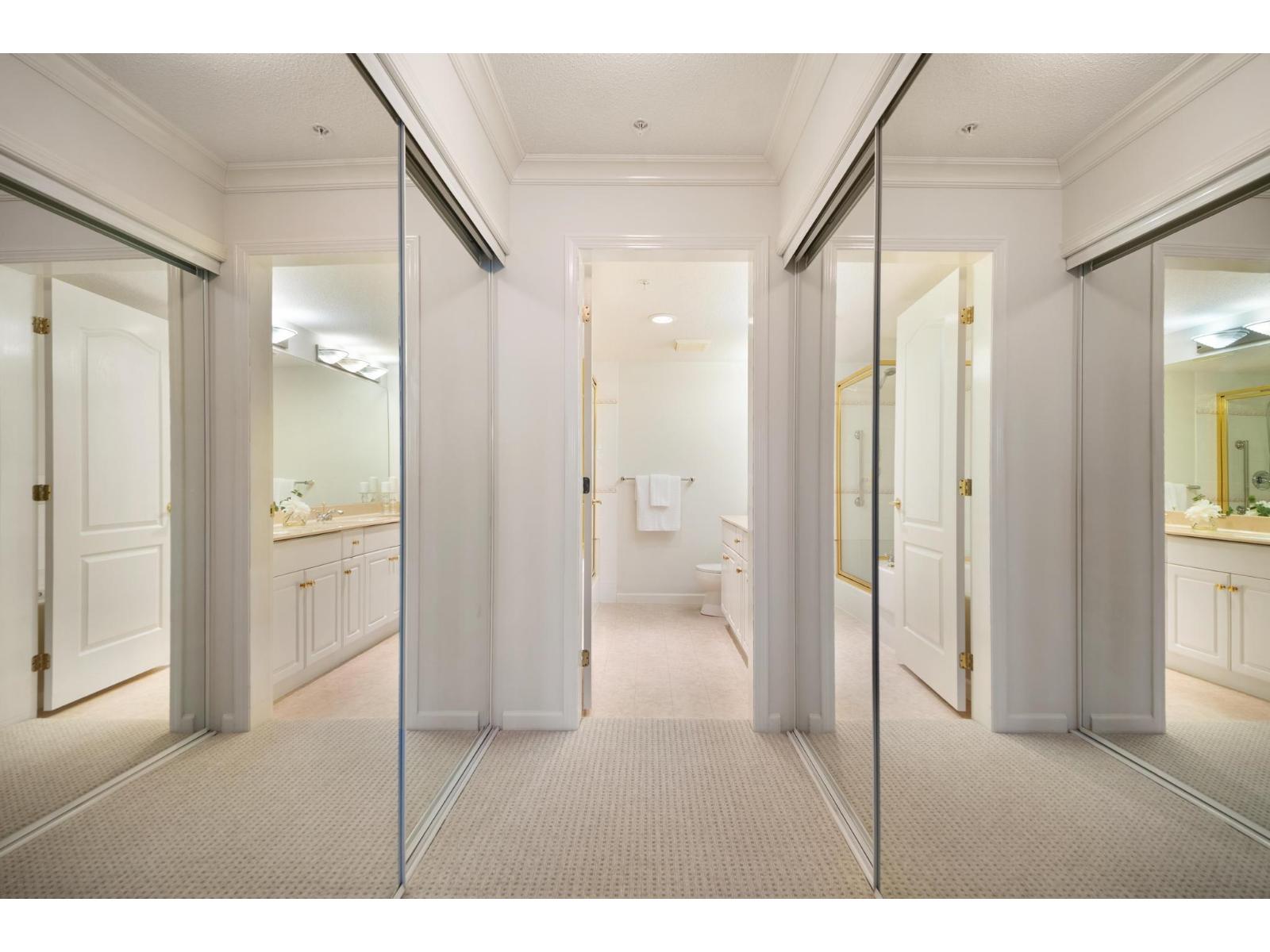 | Stratford Garden - Former Georgia Award Complex. Enclave of 3 buildings. Move in ready new paint and flooring. 1065 sq. ft. 2-bedroom, 2-bath plan, with an east facing patio, overlooks front garden. 1 parking stall, locker and bike room. Enjoy 2 guest suites, party, exercise room and pool rooms, plus large and fully stocked workshop. All ages welcome, primarily working people and retirees, active social committee. 1 dog or 1 cat and rentals welcome. This complex is well maintained, partially rain-screened with over $1,500,000 in the contingency fund. Sides onto Bakerview Park, easy walk to Semiahmoo Mall and Peninsula Shopping Center. Early possession possible. Open House: Sat. Feb 7, 2 to 3:30 (id:5347) | |||