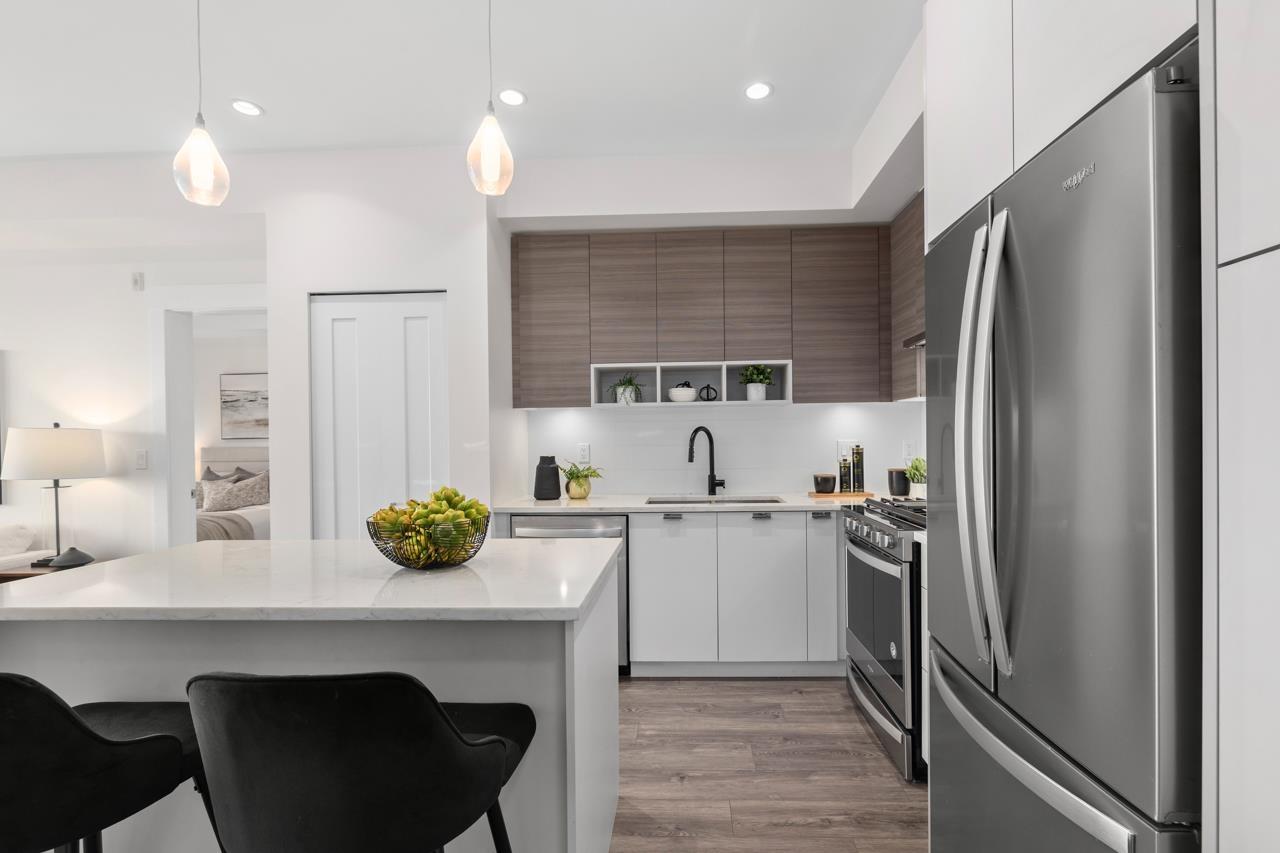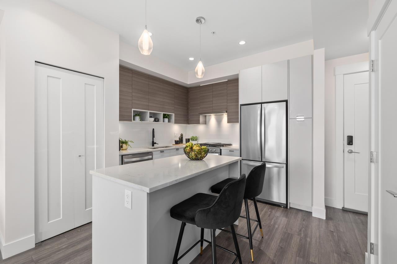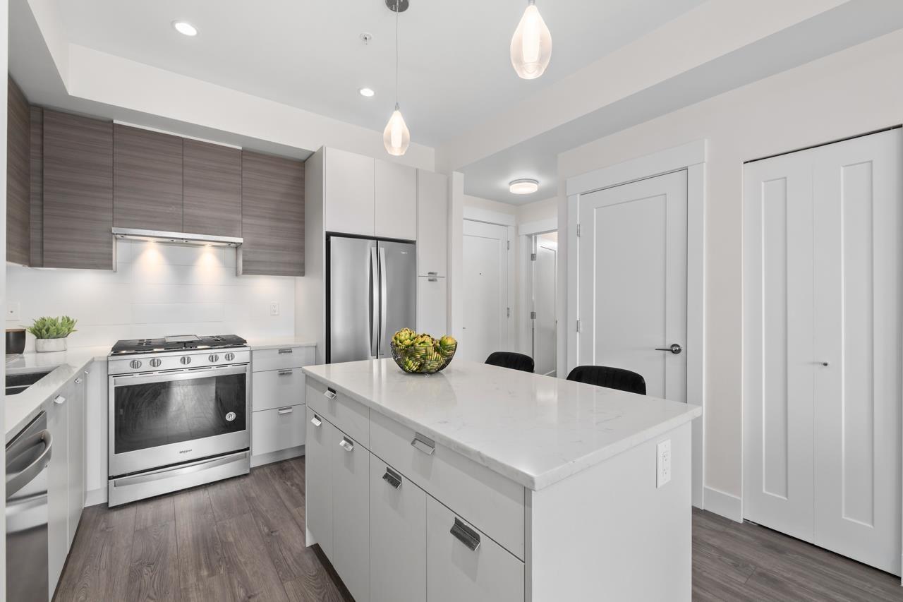 | Welcome home to 'The Residences' in the heart of Willoughby Town Centre. This bright top floor 2 bed, 2 bath home offers a thoughtful open concept layout perfect for both everyday living and entertaining. The kitchen features quartz countertops, modern cabinetry, a gas range stove, clean contemporary finishes, and is roughed in for A/C. Step outside to the oversized balcony, perfect for hosting guests or simply taking in the beautiful mountain views. Enjoy the privacy and quiet of a fourth floor, corner location along with 2 parking stalls and a storage locker. Located just steps from vibrant shops, restaurants, schools, parks, and transit, this home delivers the convenience of urban living while maintaining a warm neighbourhood feel that truly feels like home. (id:5347) | |||