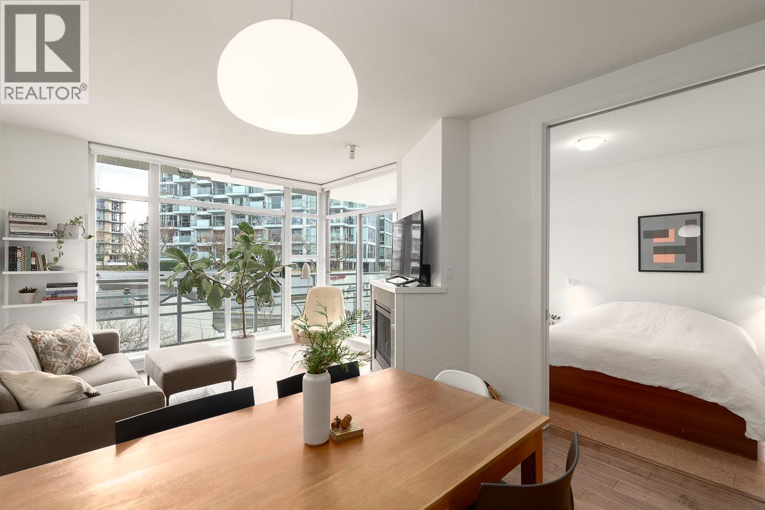 Welcome to The Sophia, a concrete mid-rise building in the sought-after Mt. Pleasant neighbourhood. This stylish and functional 2-bed, 2-bath +den/flex space home offers an exceptional floor plan with floor-to-ceiling windows, a cozy fireplace, and North