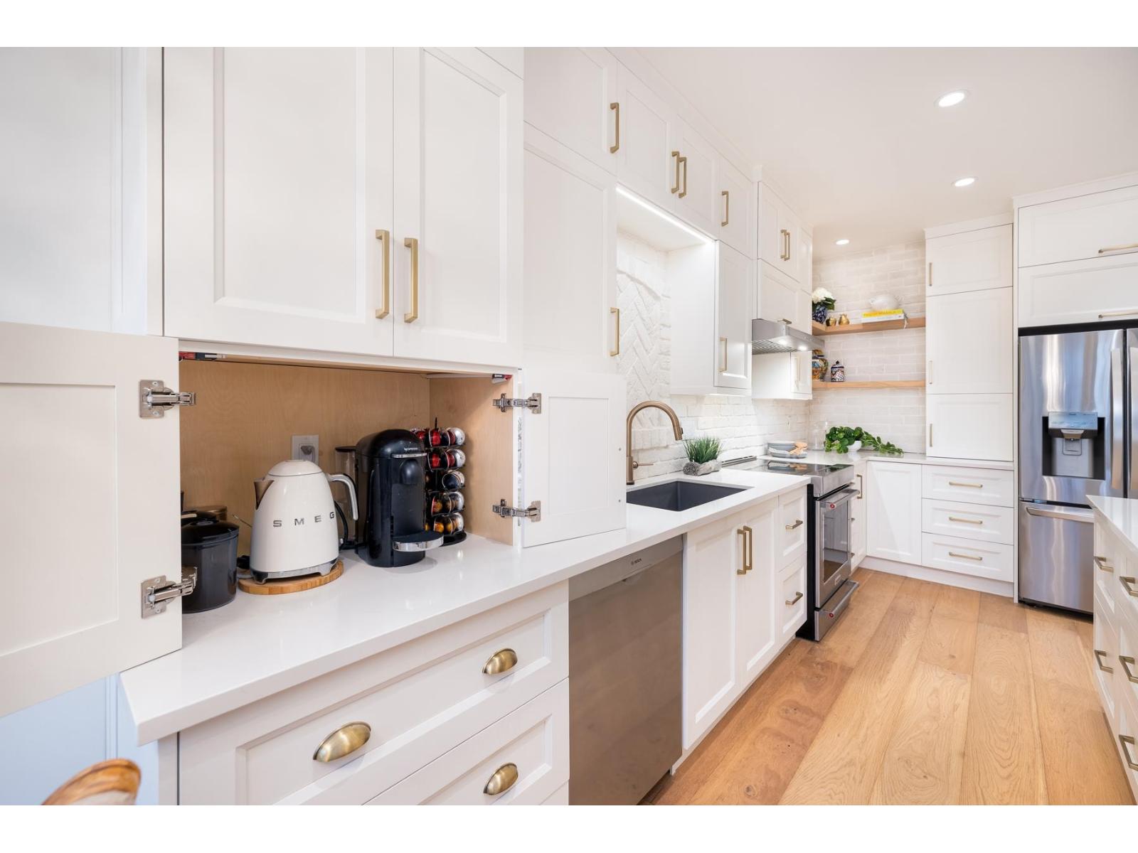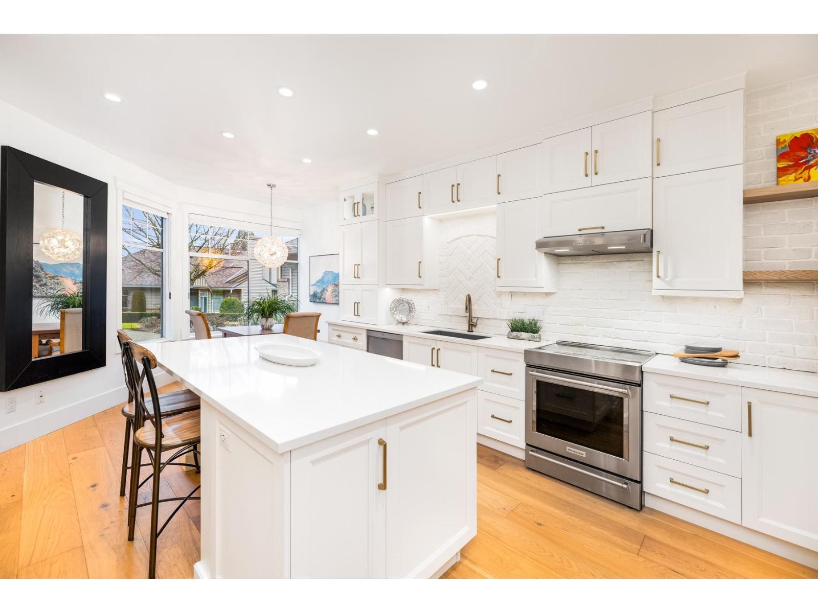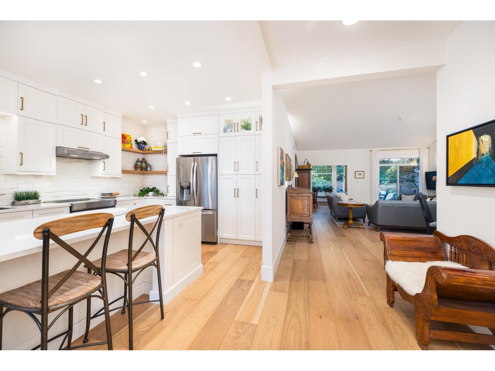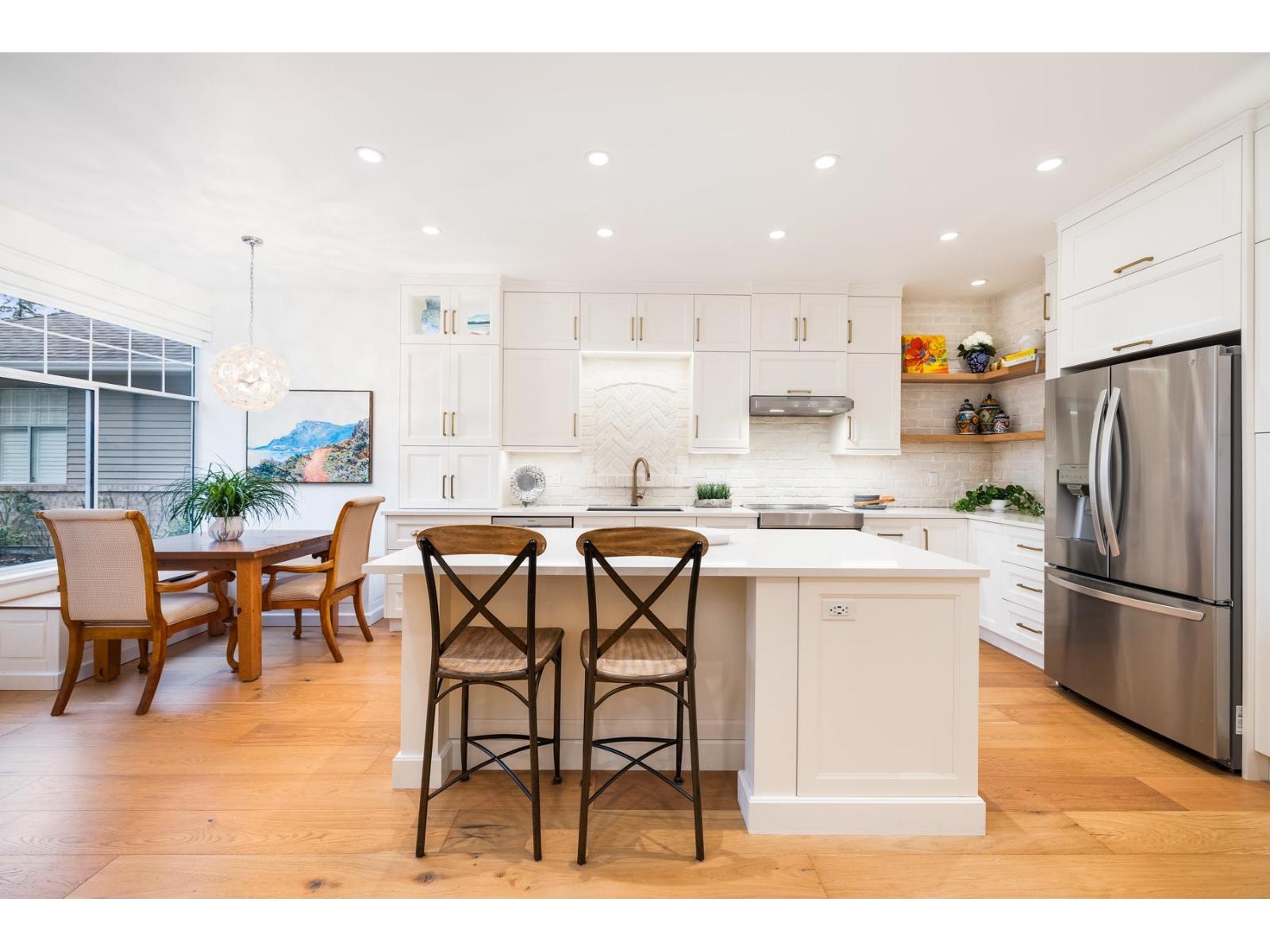 | Bishop's Green is THE ultimate in the 55+ resort like community. This beautiful 2 BR + Den, 2 Full Bath, one level home has been FULLY RENO'D to high end, quality European standards & is fully accessible. The spectacular Chef's Kiss kitchen boasts solid wood cabinets w/ custom built ins, bev station, induction range, white brick backsplash w/ herringbone centre, quartz countertops & oversized island. Spa-like ensuite w/ curbless Carrara marble trim shower. Primary BR, den & vaulted Great Room/Dining w/ flr to ceil fireplace look out expansive windows to south facing private, treed backyard w/ 400SF flagstone patio. Clubhouse w/ pool, hot tub, guest suite, gym, workshop & full time caretaker. Nestled along the mature trees of Semiahmoo Trail w/ direct access & walkable to the shops & services at Southpoint & Peninsula Village. OPEN HOUSE SUNDAY FEB 22 2-4PM (id:5347) | |||