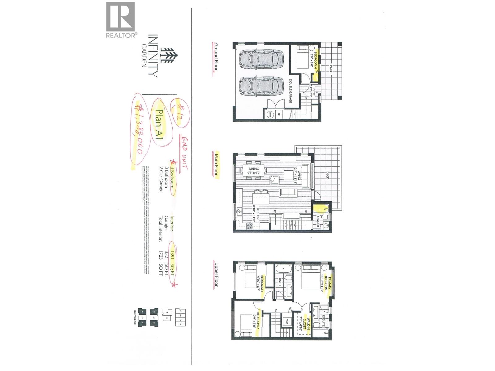 | $88,000 Decorating allowance to buyers of next 2 deals. "INFINITY GARDEN" Another 12-unit Top Quality Brand New Townhome Project built by Western Construction on Granville Avenue (between Garden City Road & No. 4 Road). A very convenient location near Lansdowne Shopping Mall, Canada Line Station & Walmart. Walk to 23-acre Garden City Community Park, Henry Anderson Elementary School, AR MacNeil Secondary School & Kwantleen University. Top of the line appliances, designer kitchen, geothermal heating & cooling, EV-ready garage, 9' ceiling on main floor and 10' ceiling on top floor. Fenced private yard at front entrance & big sundeck on main floor as extra space for family enjoyment. Ready for occupancy in August or September 2026. Only 5% deposit needed until completion date. Showing by appointment. (id:5347) | |||