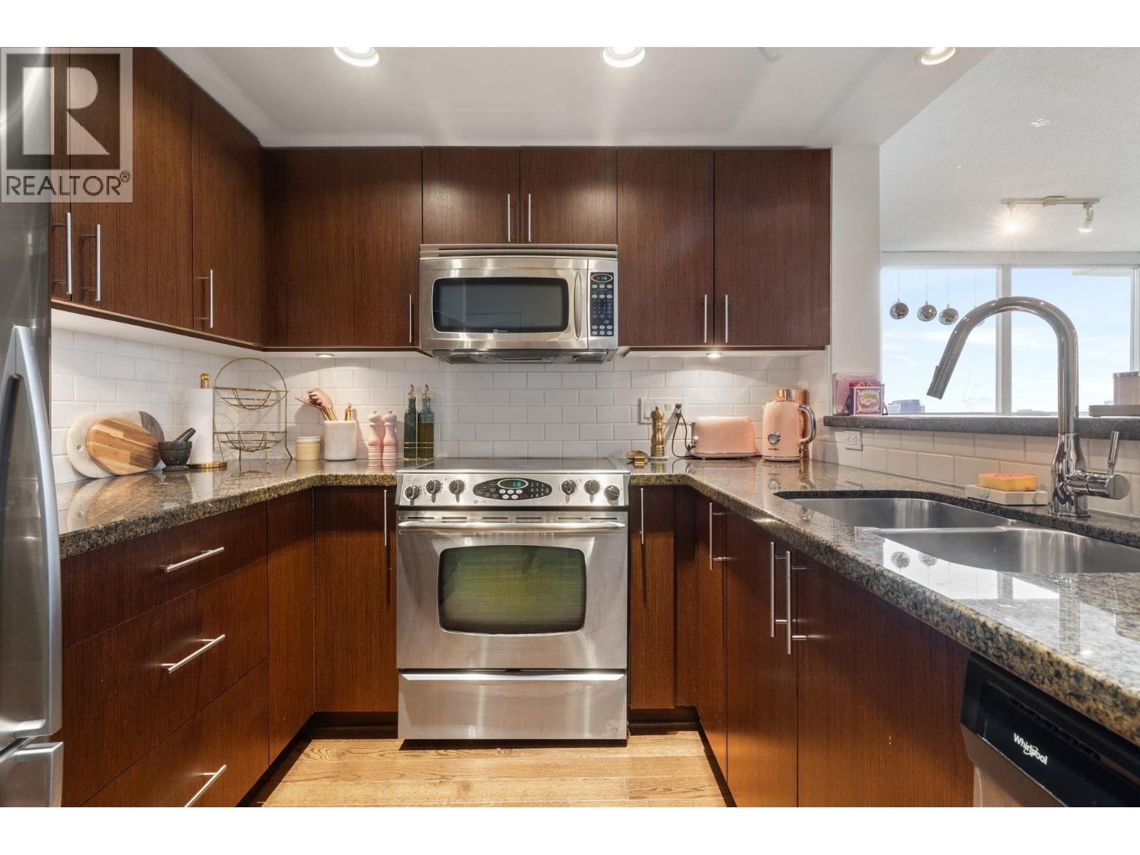 | SUPERBLY DESIGNED HIGH FLOOR TWO BEDROOM CORNER HOME WITH PANORAMIC CITY, MOUNTAIN + WATER VIEWS. THE SUITE - practical layout for a couple or young family. 2 "real" bedrooms, including primary with walk through closet + semi en suite. Open kitchen, h/w f | |||