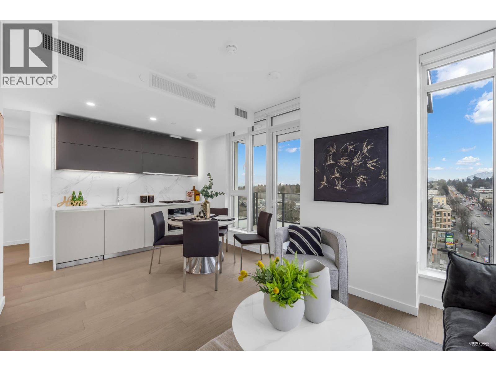 | Thoughtfully arranged to maximize every corner of living space, this well-executed 2 Bed + Den, 2 Bath home offers a smart, functional layout suited to everyday family living. Bedrooms are well separated for privacy, while the additional den provides versatile space for work or study. The home is finished with a premium Gaggenau and Miele appliance package, paired with clean contemporary detailing throughout. Large windows bring in natural light, enhancing the bright and comfortable interior atmosphere. A comfortable balcony extends the living area outdoors, creating an inviting space to relax. Located within W68 by Westland Living on Vancouver´s West Side at Granville & W 68th, residents are steps to neighbourhood shops, transit, and daily conveniences. (id:5347) | |||