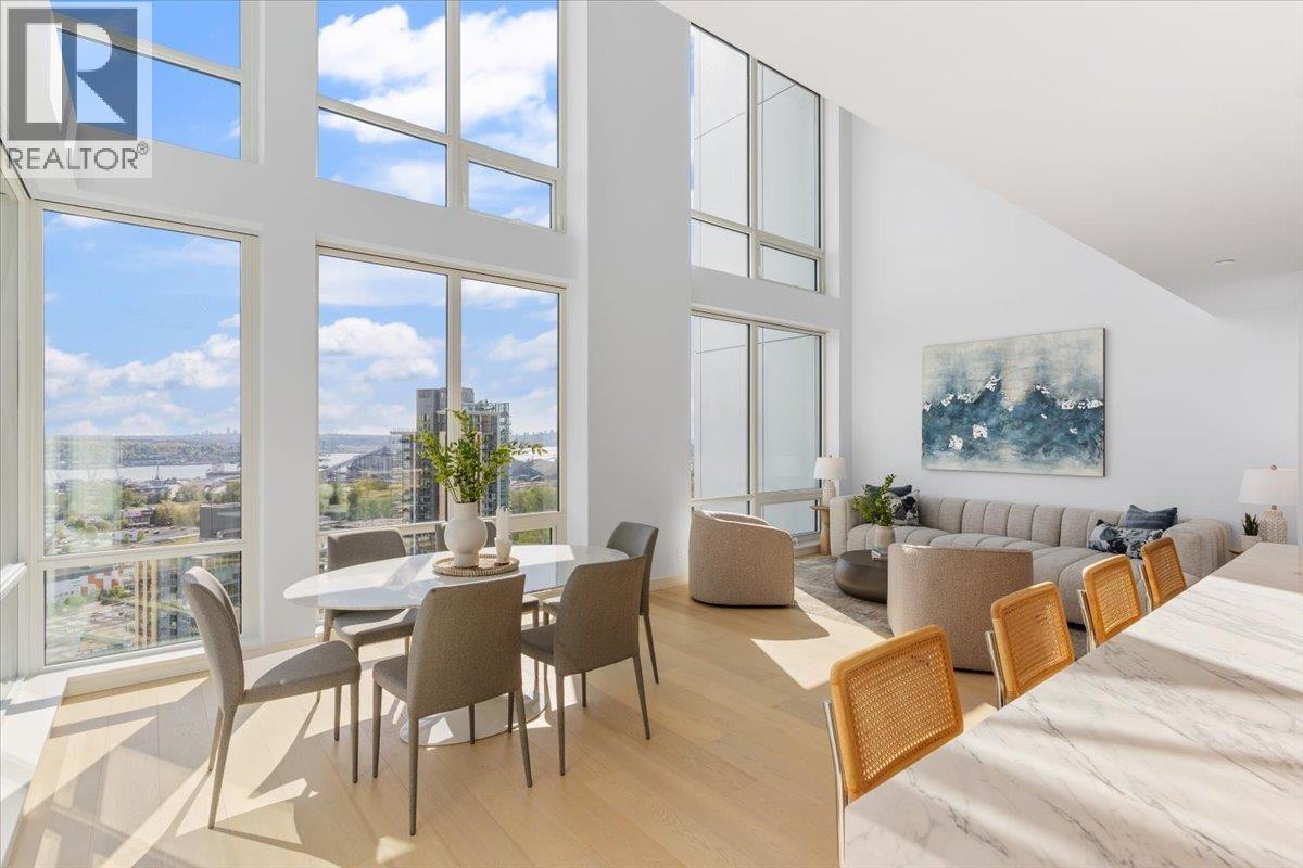 | Experience luxury on a grand scale at Jewel Box 2404, a two-level, 3-bed & flex sky home at Apex in North Vancouver's Seylynn Village. This Denna Collection residence features 1860+ SQFT of indoor living space, 3.5 bathrooms, Italian cabinetry, integrated Gaggenau appliances, hardwood flooring, custom wardrobes and TWO private terraces. The double-height windows & ceilings in the sun-filled living area, along with the stunning panoramic views, give this home "Wow Factor". The newer building offers peace of mind with A/C, concierge service, and top-tier amenities, incl. indoor pool, fitness centre, sauna & steam rooms, guest suite, party rooms, and more. Plus the exclusive use of 2 parking stalls (one EV-ready) & a private STORAGE ROOM. (id:5347) | |||