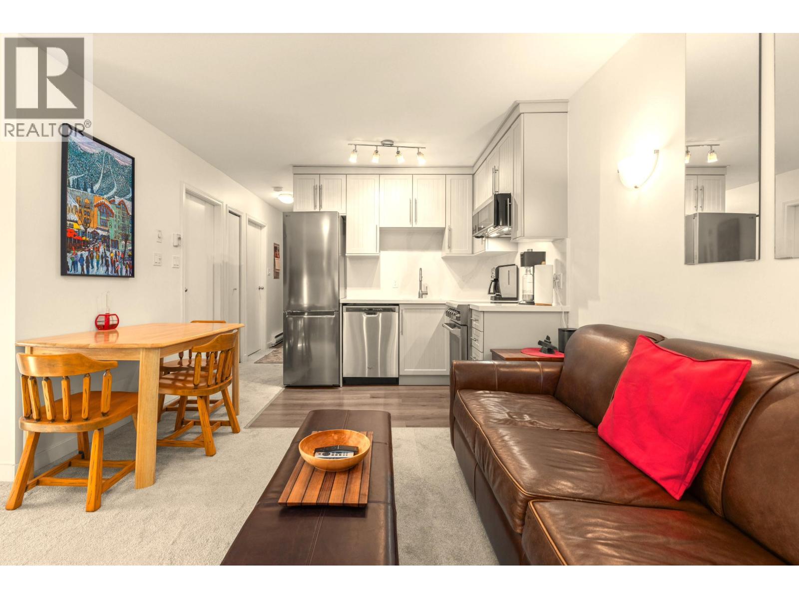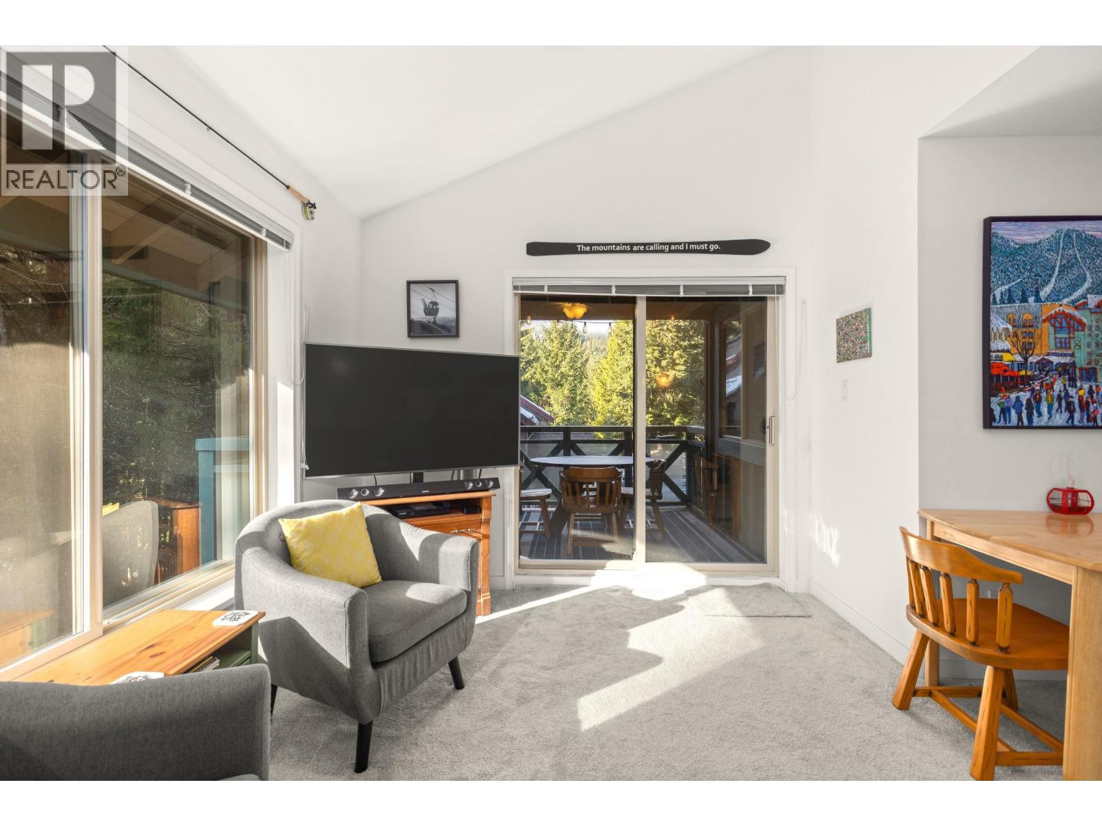 | Centrally located 2-bedroom, top-floor end unit townhouse in Alta Vista, ideally situated between Whistler Village and Creekside ski lifts. Just a short walk to Lakeside Park / Alta Lake and steps from the Valley Trail, year-round recreation is right at your doorstop. This bright home features vaulted ceilings, an open layout, and a large southwest-facing balcony with mountain views. Recent updates include a renovated kitchen with stainless steel appliances, renovated bathroom, new carpet and flooring, and fresh paint with new baseboards throughout. Additional features include in-suite laundry, gas fireplace, secured exterior storage with built-in ski and gear storage, and two parking stalls. An ideal full-time or weekend retreat in one of Whistler's most desirable neighborhoods. (id:5347) | |||