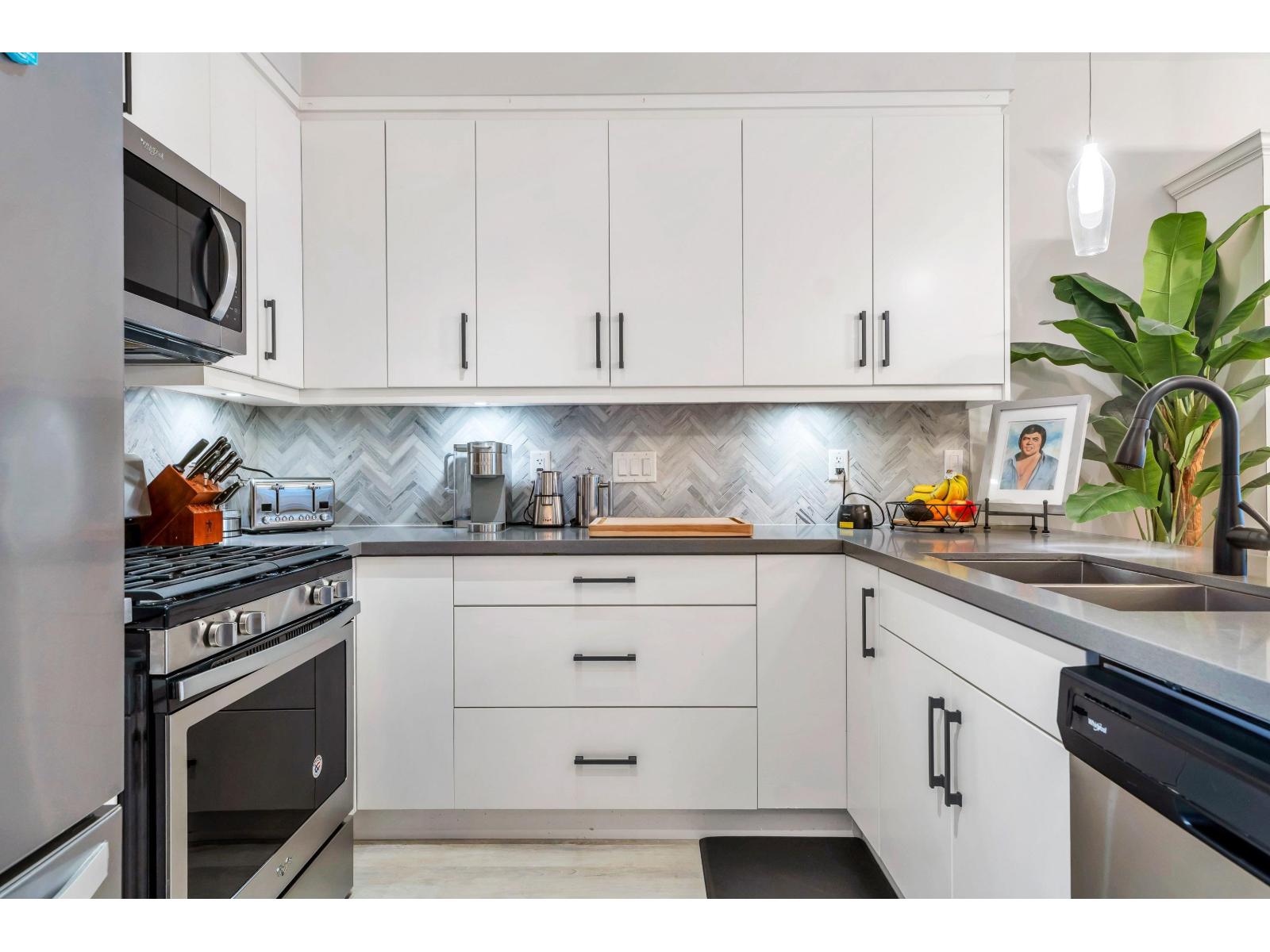 | At 1108Sq.Ft, this is the largest floor plan in the Building, and offers 2 private bedrooms, 2 full baths, over-height 9ft ceilings, premium S/S appliances, quartz countertops, shaker cabinets w/soft close doors, and new premium laminate floors & fresh paint. Nestled in nature's expansive greens along the Nicomekl River, with sweeping views of the coastal mountains off the 2 balconies. Crescendo is a collection of luxury condos situated in South Surrey, minutes away from Crescent Beach. With easy access to King George Hwy, Hwy 99, Hwy 91, the US border, Shops at Morgan, the prestigious Morgan Creek Golf Course, Park & Ride, Beaches, Restaurants, Golf courses, etc, which makes this a desirable location. This unit also comes with 1 underground parking stall & storage locker. (id:5347) | |||
