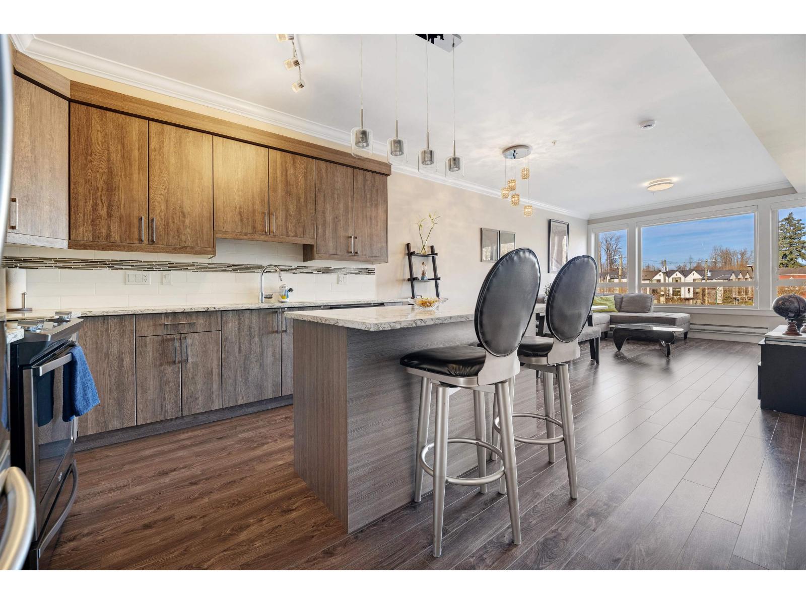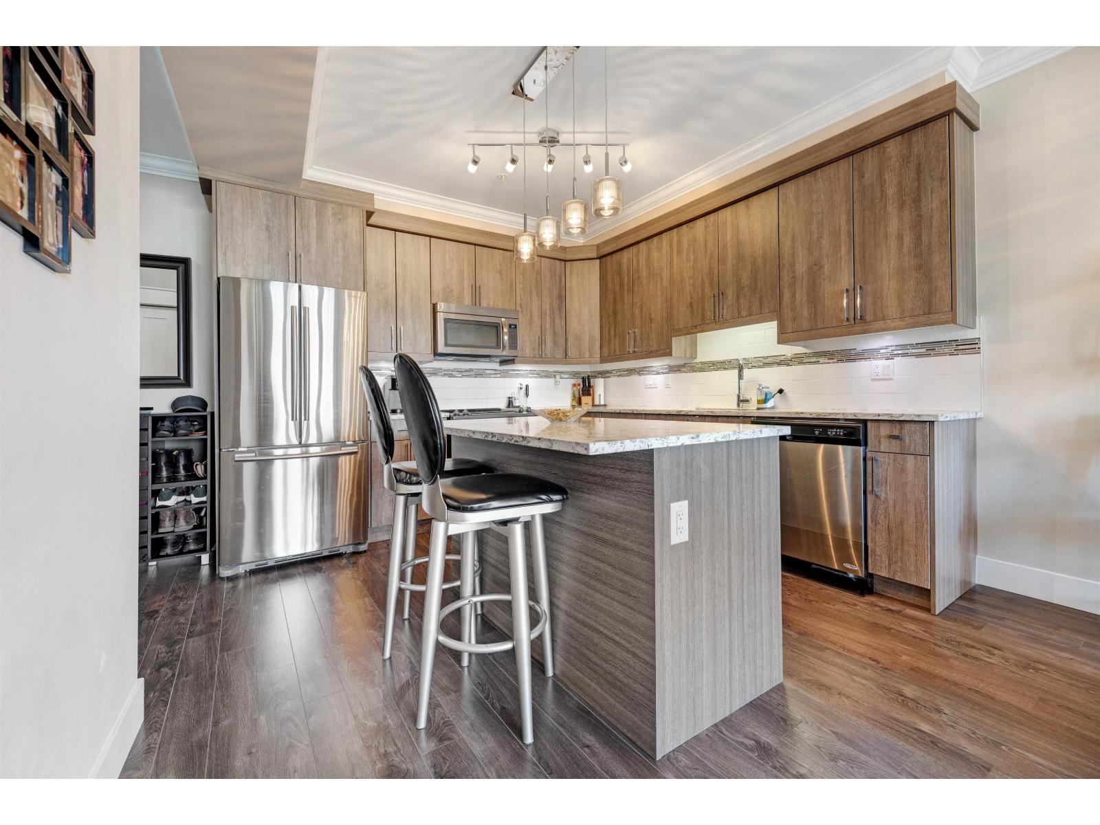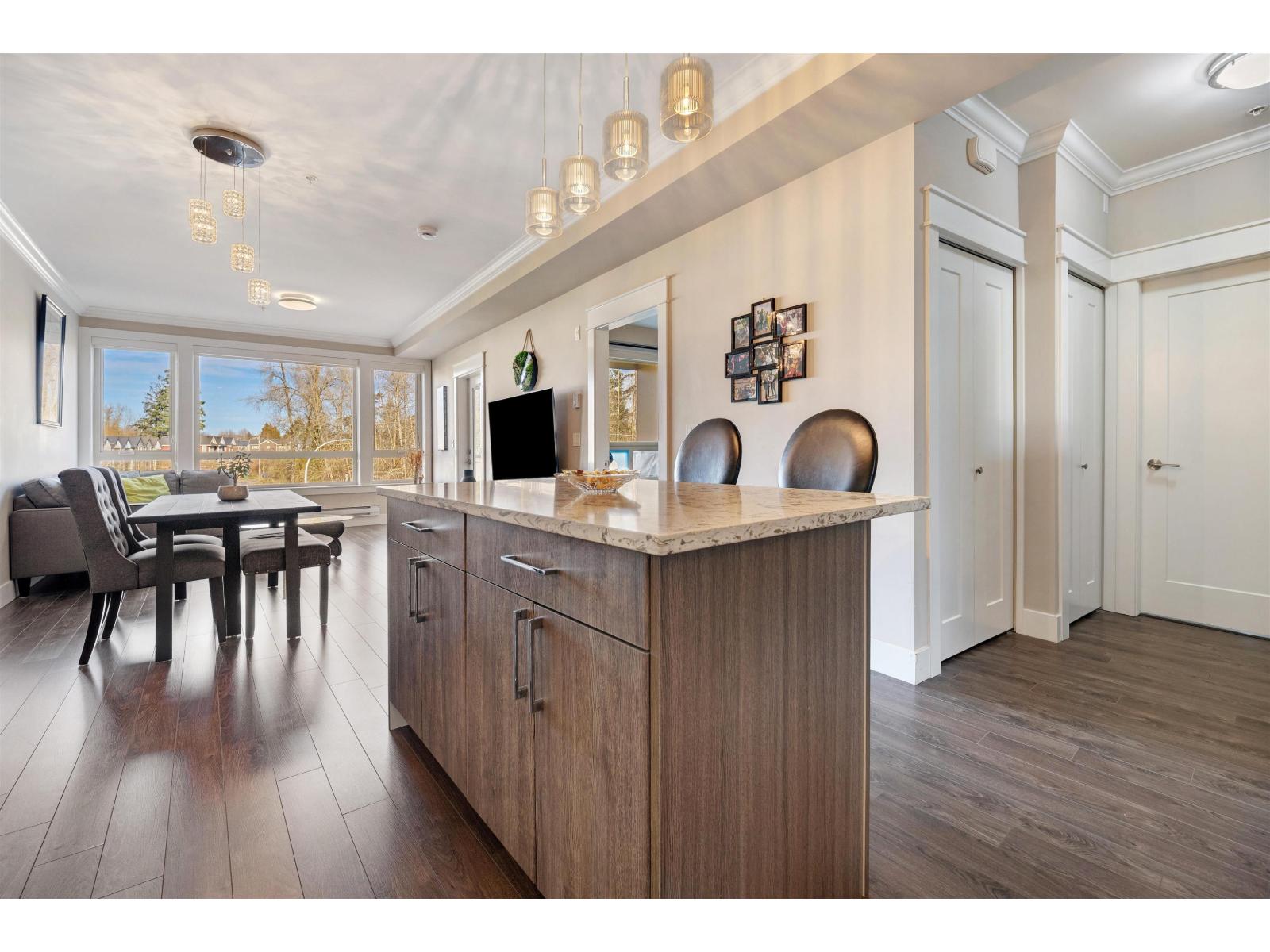| LOCATION | SPACE | FUTURE VALUE. This JUMBO one-bedroom offers nearly 700 sq ft of comfortable, open living in one of Clayton's most connected pockets. Offering 9-foot ceilings, crown molding, and bright and airy, while oversized windows bring in plenty of natural light. Step outside to your private, covered, all-seasons balcony-perfect for morning coffee or relaxing in the evening. With shops and dining right downstairs, the future Clayton SkyTrain Station just steps away, and quick access to highways, transit, Tim Hortons and banks, the home also comes with 1 parking and 1 storage. Immaculately maintained, this is a solid option for first-time buyers or investors alike. (id:5347) | |||