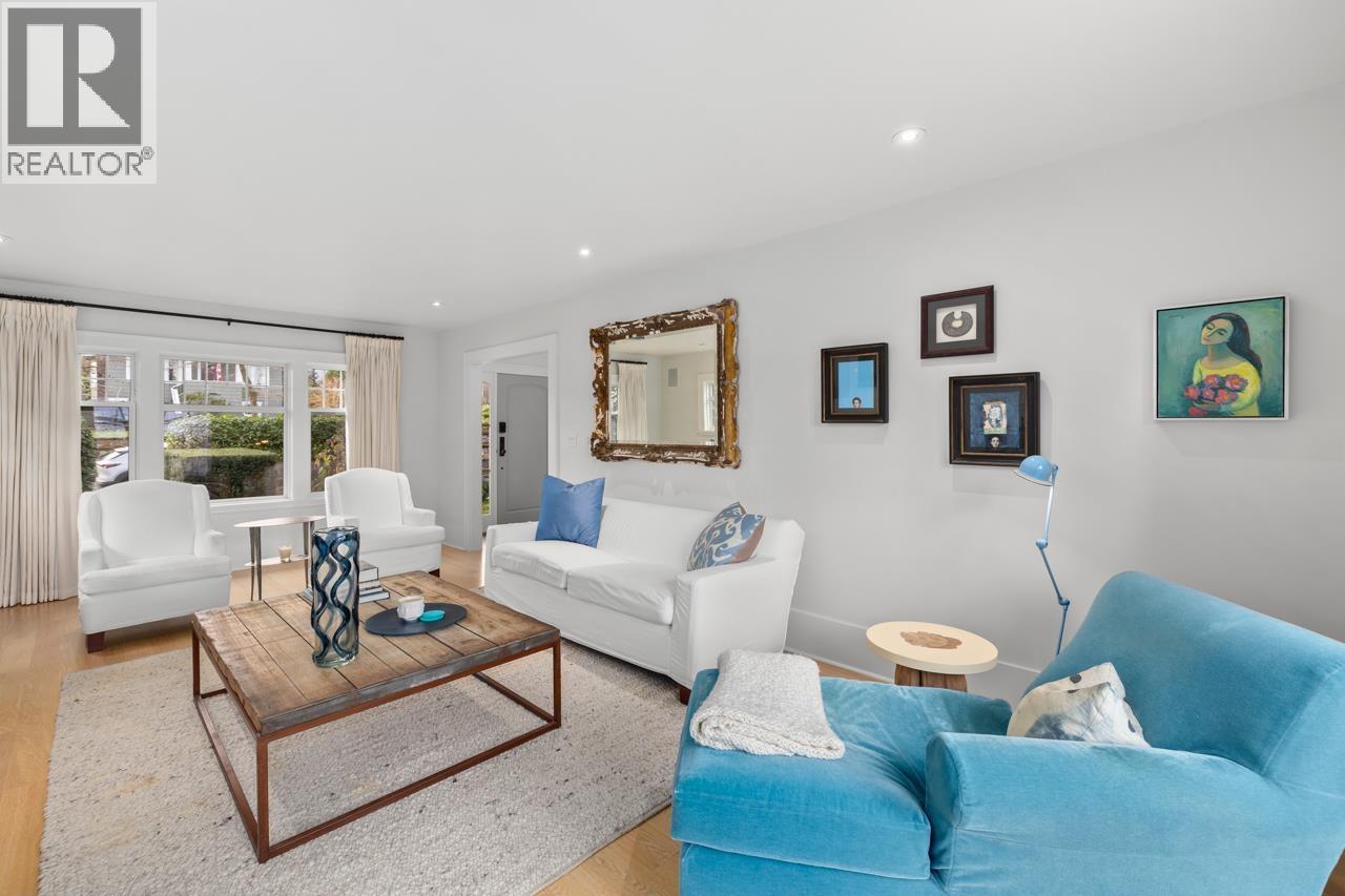 | This fully renovated, classic Westside residence in Point Grey sits on a quiet treed line st offering MOUNT, OCEAN & CITY VIEWS. Professionally redesigned interiors & landscaping enhance this family home near top public, private, & French schls. Beaches, parks, shopping & UBC are mins away. Open plan on main allows easy flow for entertaining w/large deck off family rm overlooking garden, patios & east to DT. Ocean & city views from Primary bdrm w/large W/I closet & ensuite, w/3 more bdrms + shared ensuite up. Lower lvl w/rec rm, large flex space for laundry, mudrm & storage. Architecturally designed double garage w/private mature gardens, stone wall feats & hedging. Feat. in Canadian House & Home magazine. (id:5347) | |||