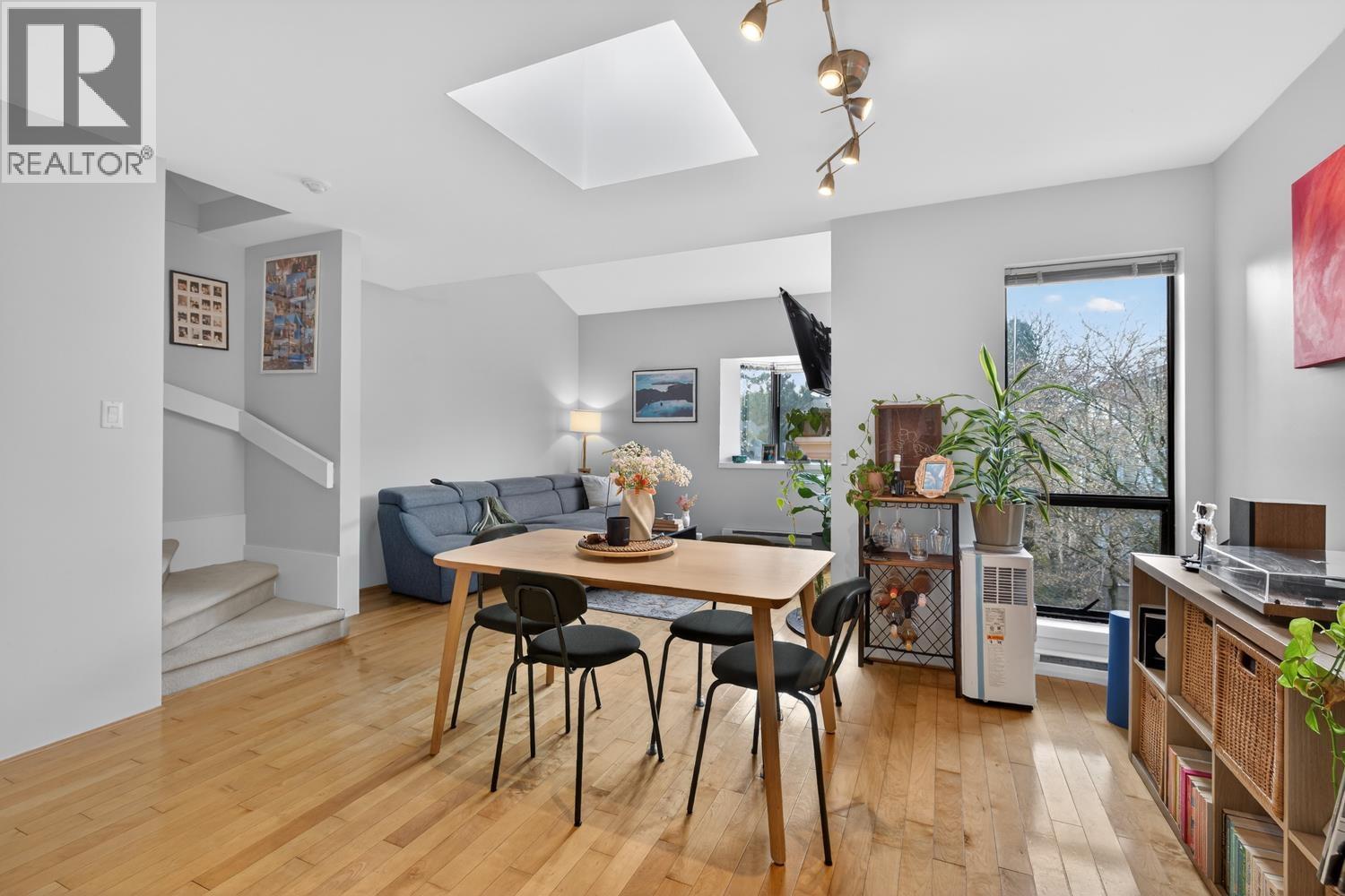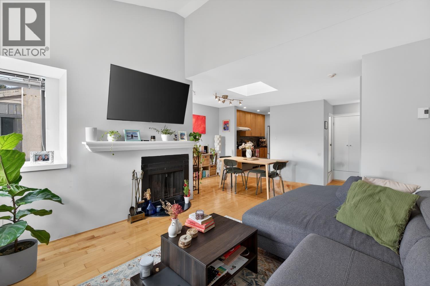 | Live in the heart of Kitsilano! Welcome to this stunning two level, 2 bedroom Penthouse featuring an expansive 371 sqft. rooftop patio with city and mountain views! This home radiates character and light, boasting vaulted ceilings, refreshed skylight, and a cozy wood burning fireplace. The main level offers an open floorplan w/recently updated kitchen appliances and smart home climate controls. The lower level showcases two spacious bedrooms with custom millwork and updated flooring. Your private rooftop has been recently refreshed with updated decking and fencing - an entertainer´s dream! Well maintained building with new roof (2022). Complete with parking and storage, you´re just steps from the best boutiques, dining, shopping, and transit Kitsilano has to offer! (id:5347) | |||