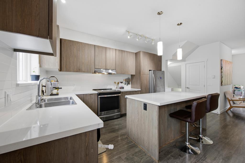 | Welcome to Kaleido in Polygon's Sunstone community! Fresh paint and new carpet complement a bright home with an entry facing the green space-like an extended yard for kids. Open-concept living features a spacious kitchen with sleek cabinetry, quartz counters, an oversized island and stainless-steel appliances. Step out to the patio for BBQs and use the nook as a home office. Upstairs: primary suite with walk-in closet and dual-vanity ensuite, plus 2 bedrooms, a 4-piece bath and laundry. Double garage + 2 extra parking spots (4 total). Steps to Nordel, Hwy 91/99/17, transit, schools, shops, dining and parks. Enjoy the 12,000 sq ft Sunstone Club: gym, pool, hot tub, theatre, court, guest suites and more! Open house Sat & Sun 2-4pm. (id:5347) | |||