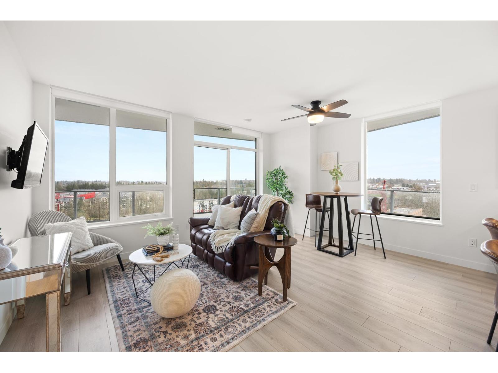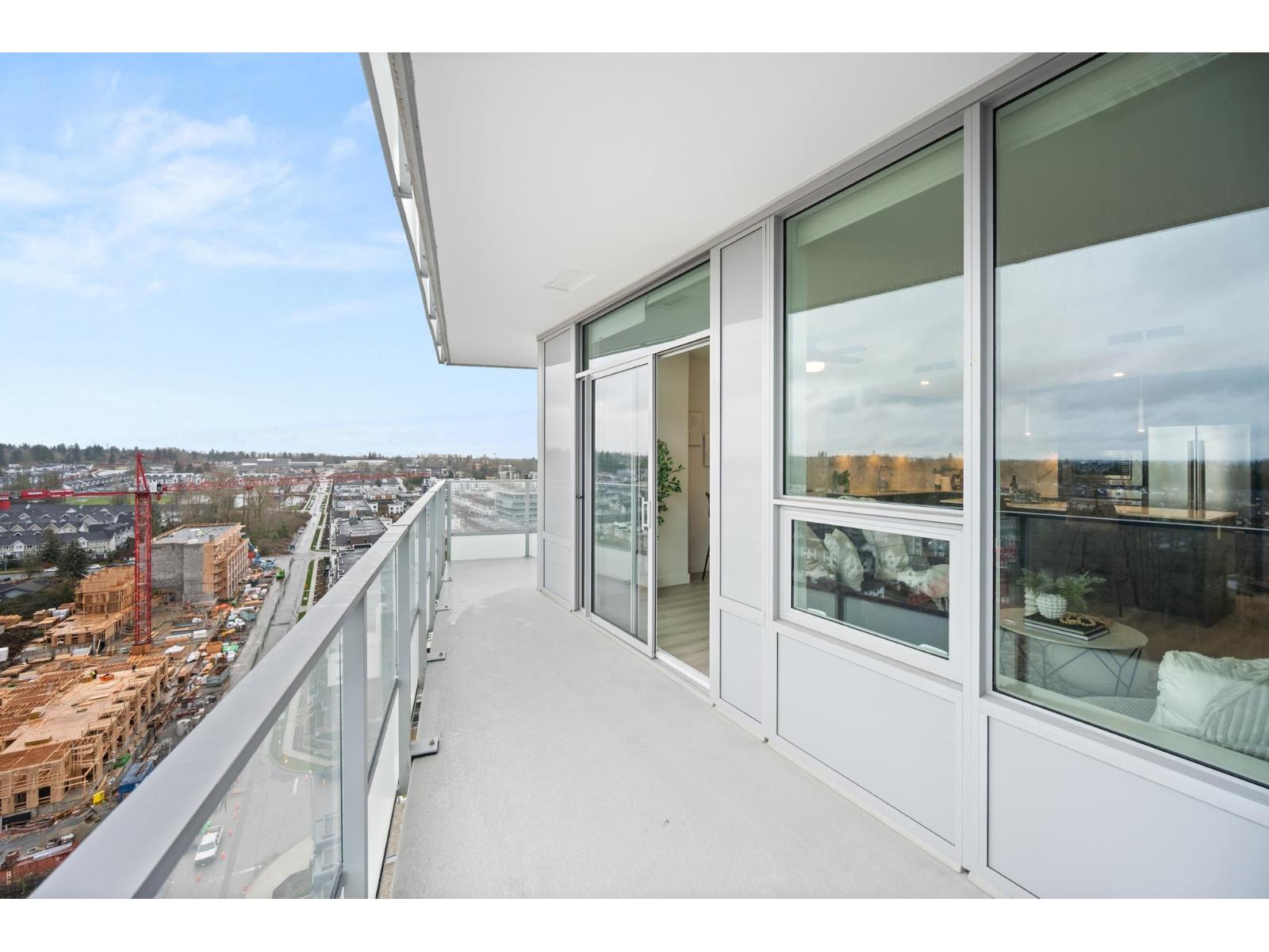 | Soar above the city from the 18th floor at The Towers, Langley's first concrete high rise. This 1 bedroom + den corner suite captures incredible views of Golden Ears and Mt. Baker and features over 300 sq. ft. of wraparound patio space for seamless indoor outdoor living. The stylish kitchen is equipped with a large island and premium Fulgor Milano appliances, while the bright open concept design offers A/C, quality finishes, and a walk in closet in the primary bedroom. Complete with TWO PARKING STALLS!, EV ready charging, a storage locker, and impressive building amenities. Ideally located close to schools, transit, shopping, and Hwy #1 for effortless everyday convenience. (id:5347) | |||