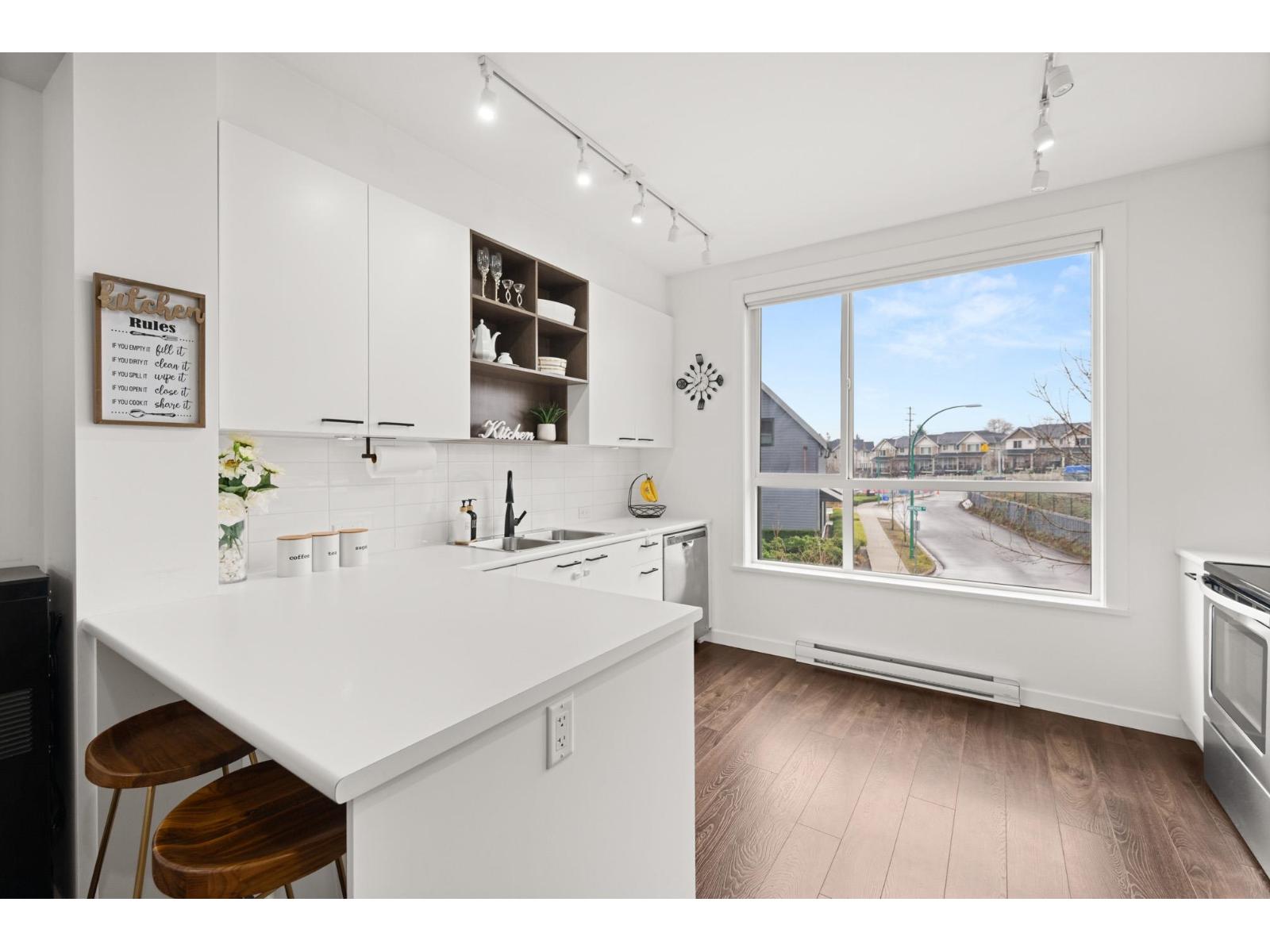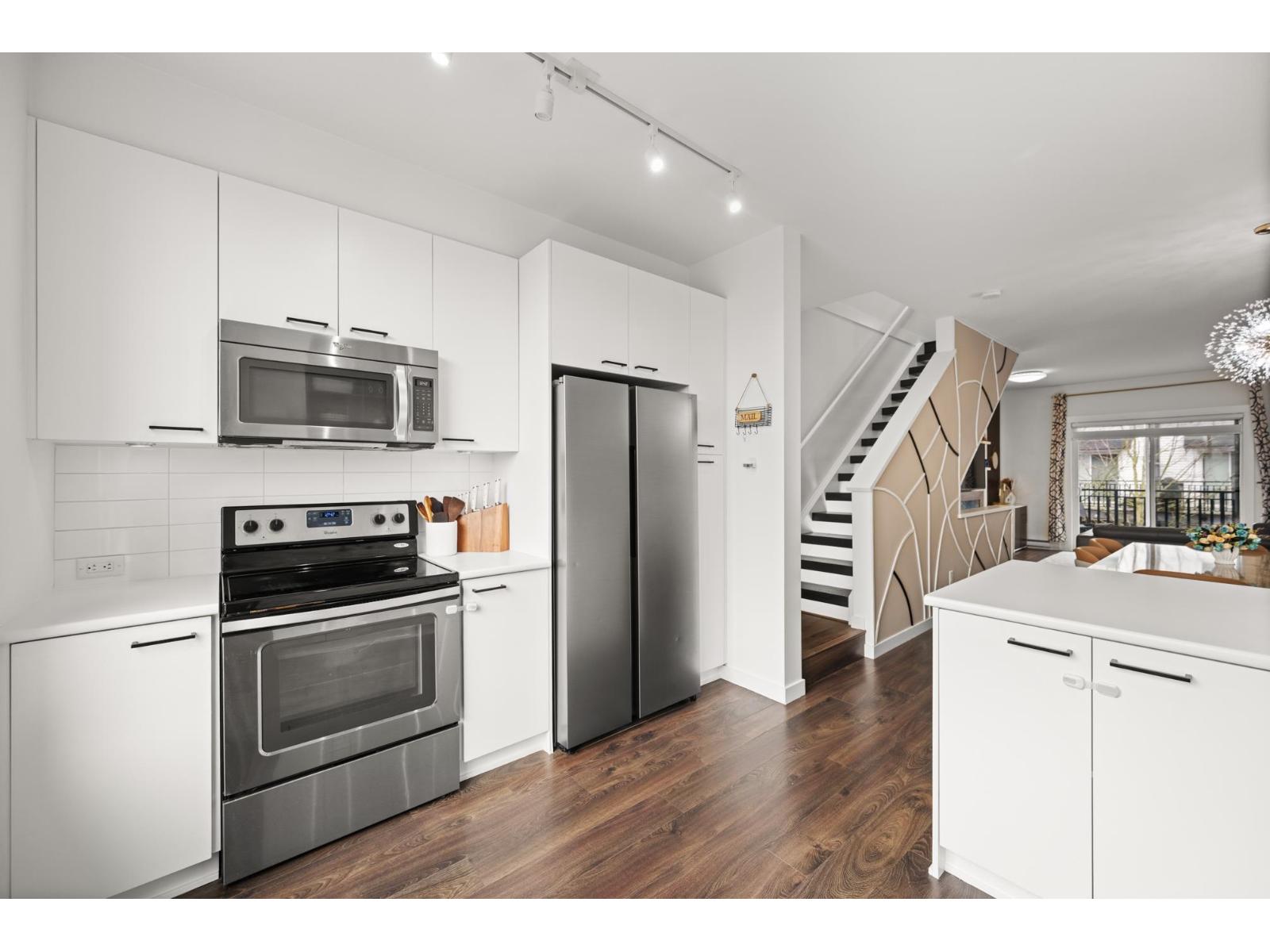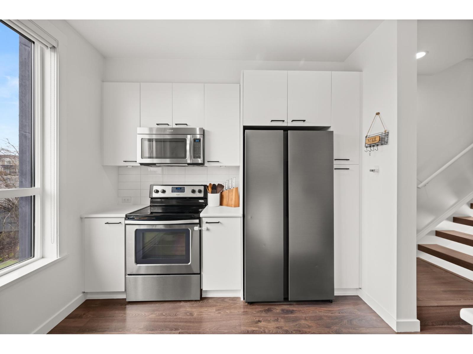 | Welcome to this beautifully cared-for, southwest-facing Mosaic home, offering modern design & elegant finishes throughout. This 2-bedroom plus den layout is thoughtfully designed w/open-concept main-floor living, a convenient powder room on the entry level next to den (home office), and two spacious bedrooms with full baths upstairs. Enjoy sunset views from the gourmet kitchen w/ breakfast bar, ample counter space, & room to entertain. Earth-toned wide-plank laminate flooring enhances the bright living area while the stunning open-riser floating staircase makes a statement. Oversized windows flood the home with natural light. Ideally located steps from Clayton Market Retail Village, major amenities, restaurants, Willowbrook Mall, and transit. Parking for 2, garage & driveway. (id:5347) | |||