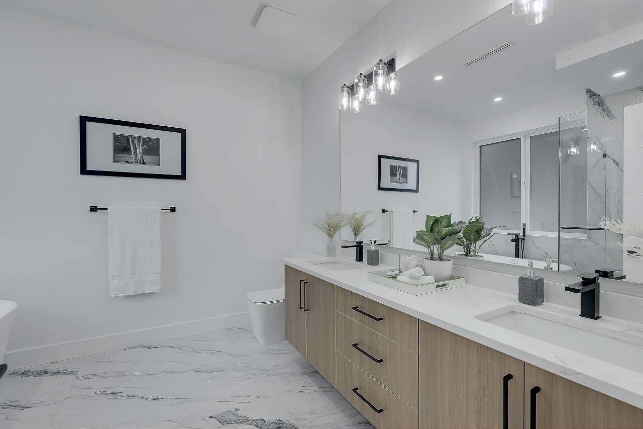 | Stunning brand-new never lived in custom-built 9-bed, 8-bath modern masterpiece in North Delta! Perfectly designed for family living and entertaining, the main floor features a spacious living & family room, master bedroom, powder room, and a gourmet kitchen with spice kitchen. Upstairs, retreat to a luxurious 2 master bedrooms. The fully finished basement offers a rec room, gym, 2-bed legal suite & 1-bed garden suite with $5,000/month rental potential. Enjoy indoor-outdoor living on the covered deck-ideal for BBQs. Premium finishes include quartz counters, acrylic cabinets, radiant in-floor heating, A/C, HVAC, custom fireplaces. Steps from schools, shopping, transit, and major bridges. 2-5-10 warranty. Purchase price excluding GST. 8 car driveway. Home is virtually staged in photos. (id:5347) | |||