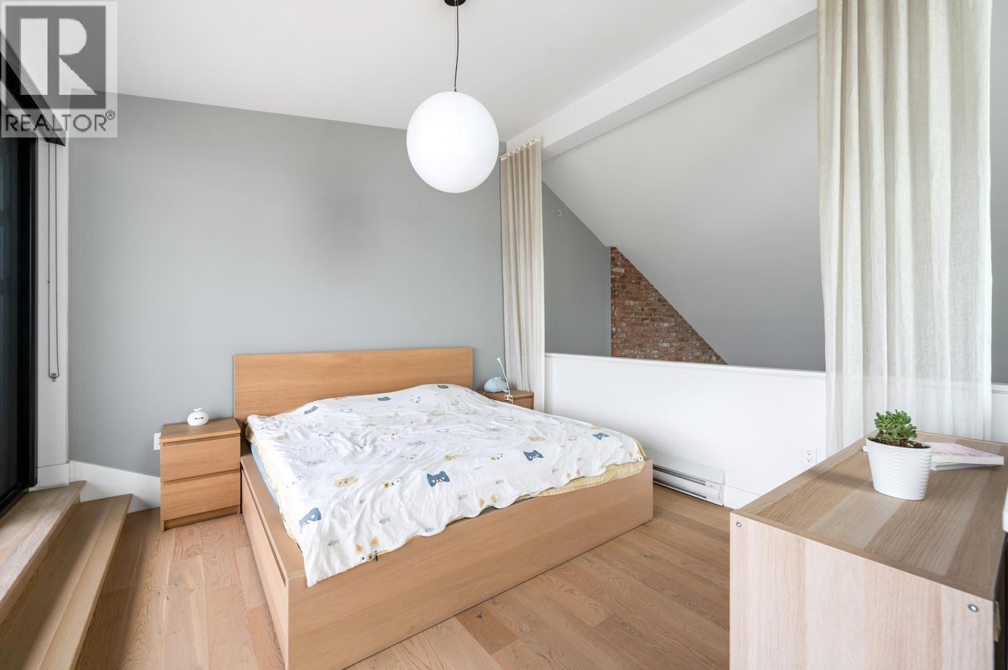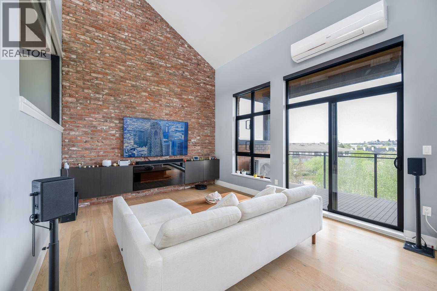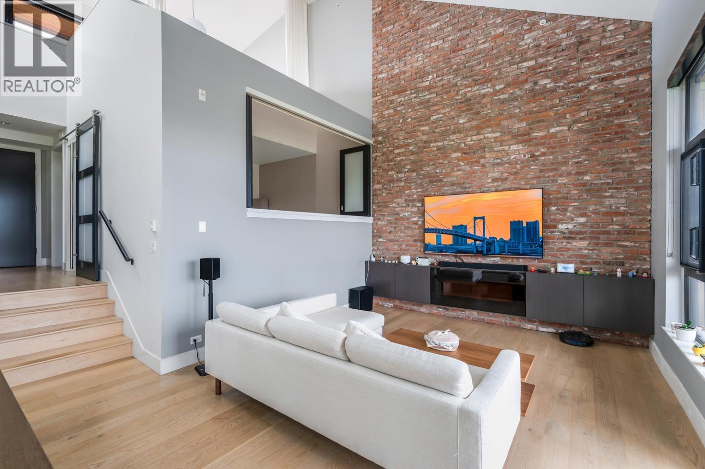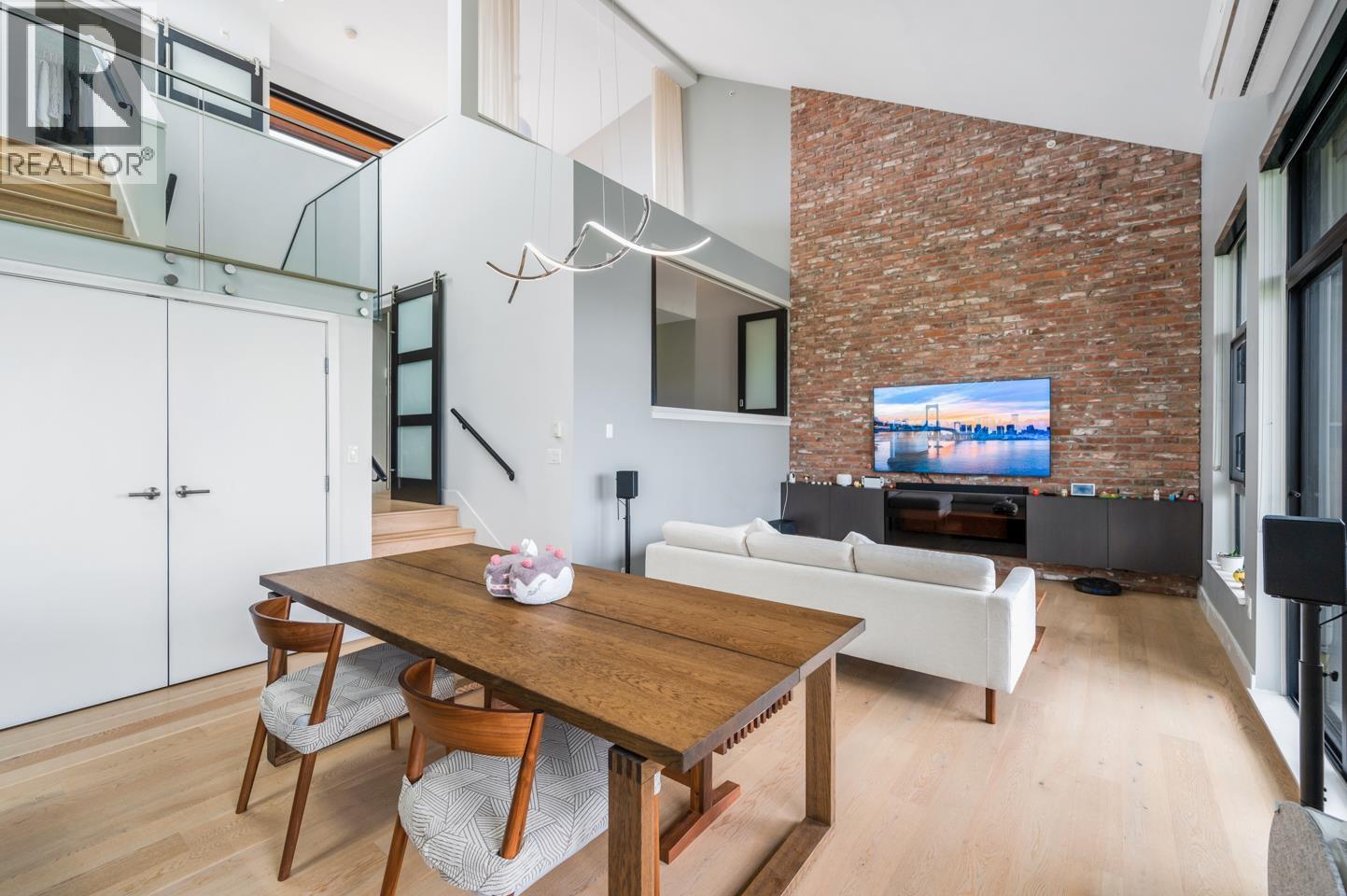 | This rarely available penthouse offers a unique blend of modern elegance and urban charm. Featuring 2 bedrooms plus a loft (serve as the master bedroom), this residence boasts 20 ft ceilings, a stunning reclaimed brick feature wall, and an open concept kitchen equipped with quartz countertops and s/s appliances. The spacious dining/living room area provides the perfect setting for entertaining guests. The loft opens up to a magnificent 500 sqf rooftop patio, where you can enjoy mesmerizing water, mountain, and city views. With two parking stalls (one with EV charging rough-in) and one storage locker included, convenience is at your fingertips. Located steps away from the riverfront promenade and the Q2Q ferry, this penthouse offers unparalleled access to the best of New Westminster living. (id:5347) | |||