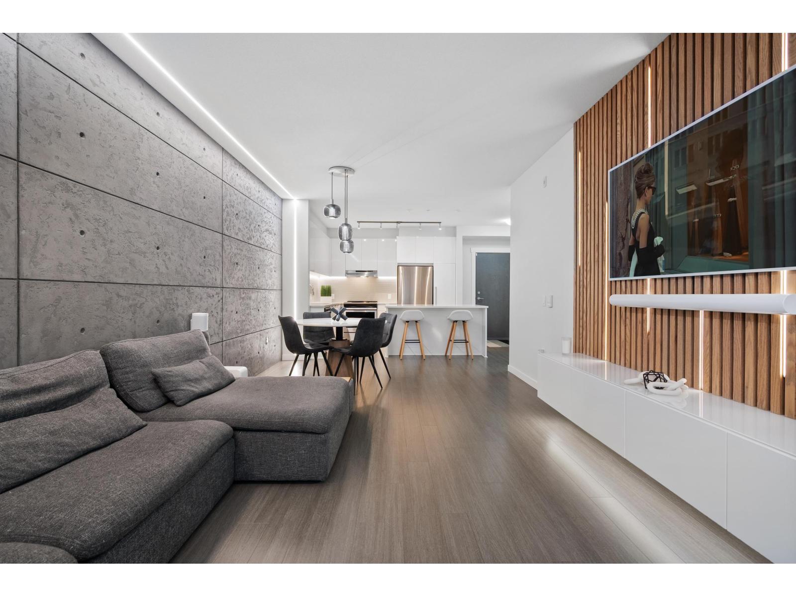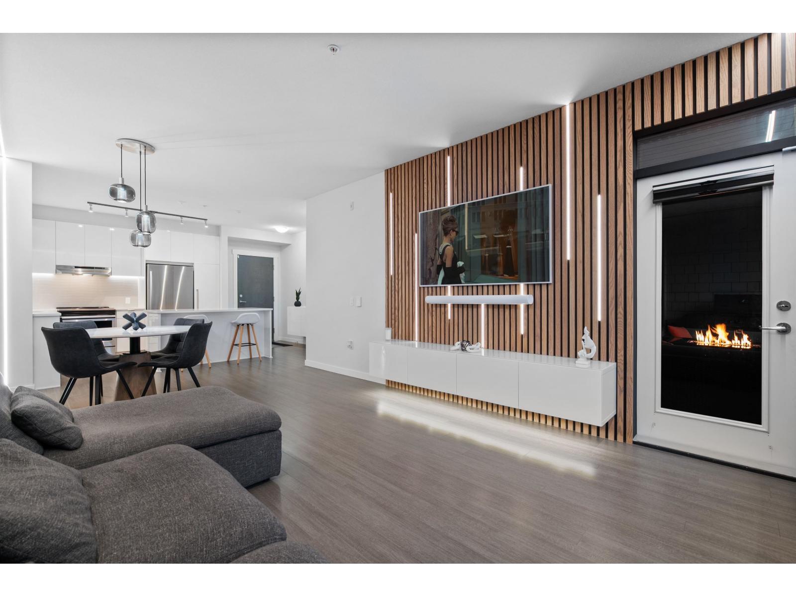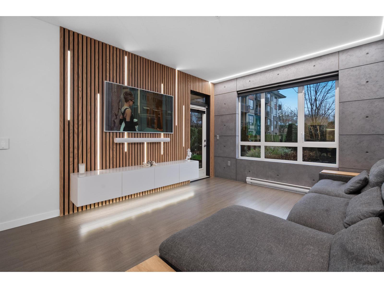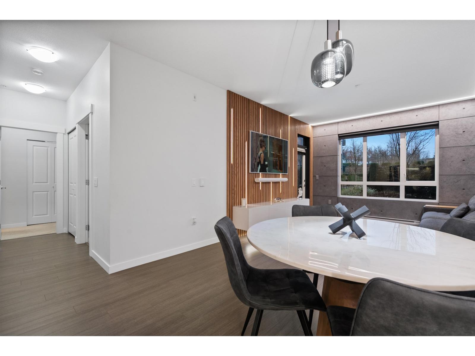| One of the finest condos Abbotsford has to offer. 2 bed 2 bath. This modern & unique ground floor unit has been extensively upgraded & finished to a level worthy of an architectural magazine feature. Showcasing spectacular details including a custom wood-slat living room feature wall, microcement accents, LED lighting throughout the living & kitchen areas, premium blinds, sleek wall mounted cabinetry and more. The private, south facing patio is perfect for summer entertaining and seamless indoor-outdoor living. Located in Elmstone by Polygon, built in 2021, a community renowned for quality construction & thoughtful design. Residents enjoy Club West's Resort Style amenities: outdoor pool, hot tub, party room, fitness centre, guest suite, theatre, hockey room etc. Open house Sat & Sun, 2-4m (id:5347) | |||