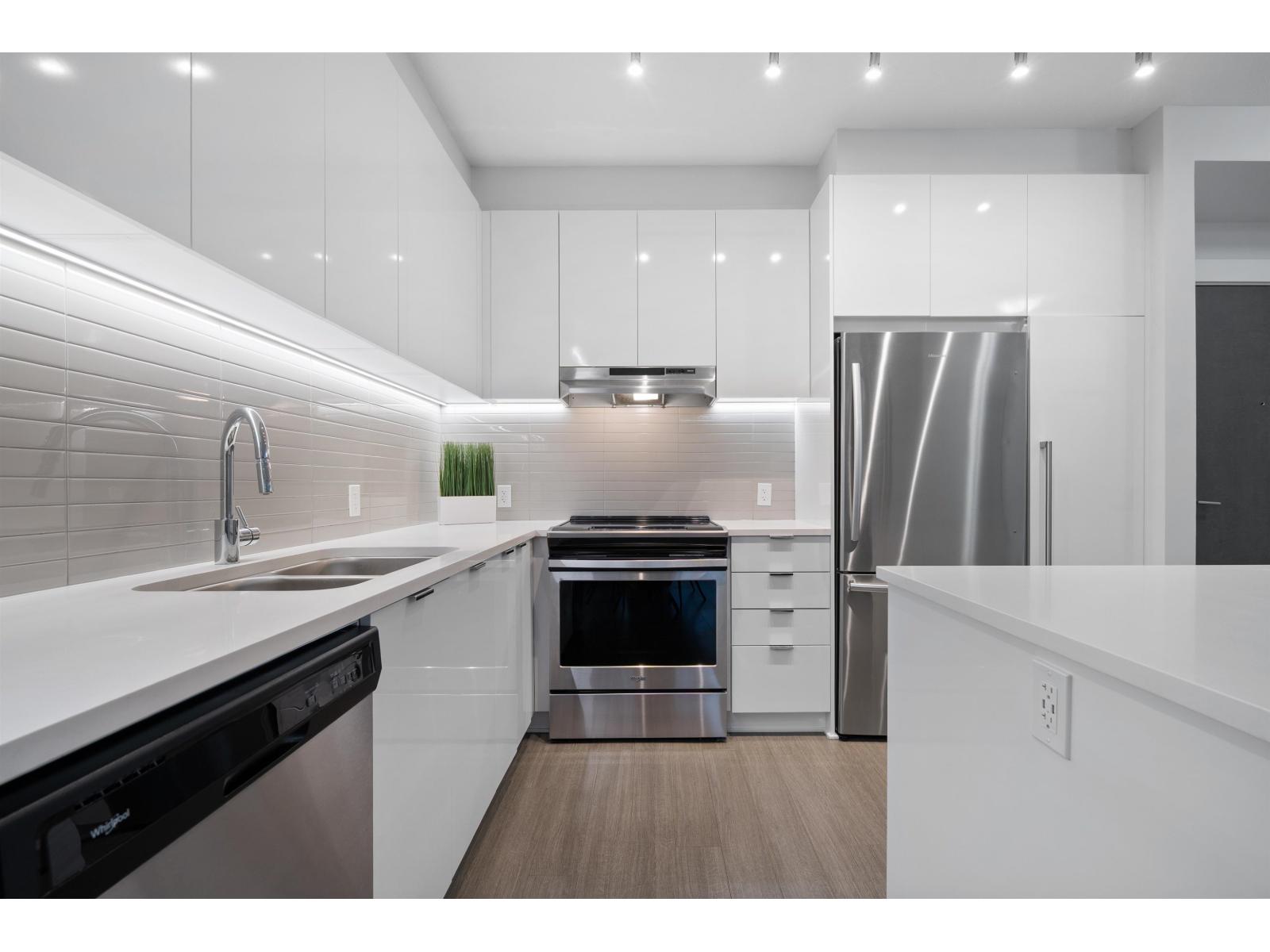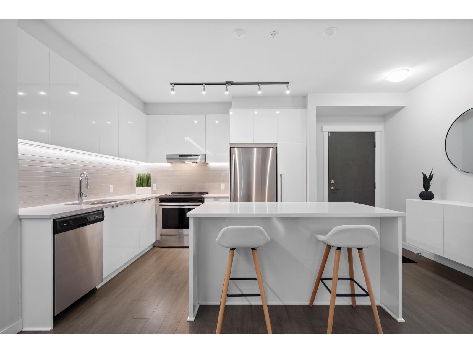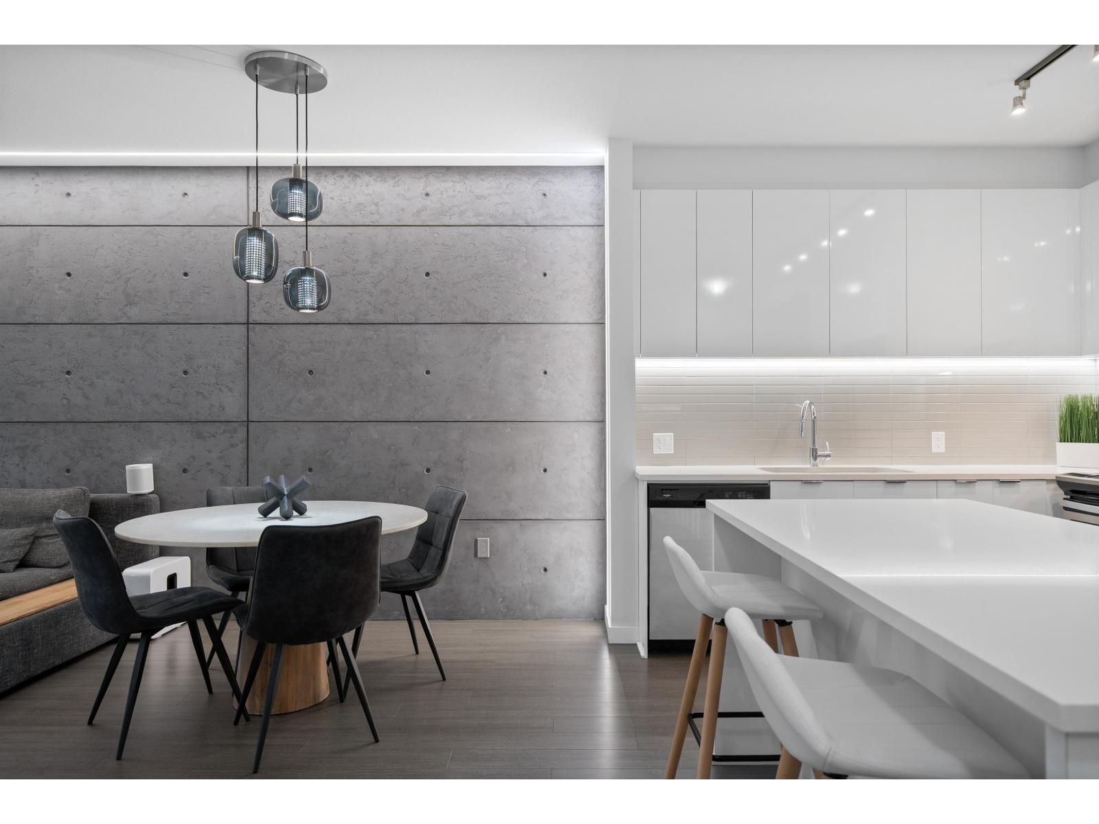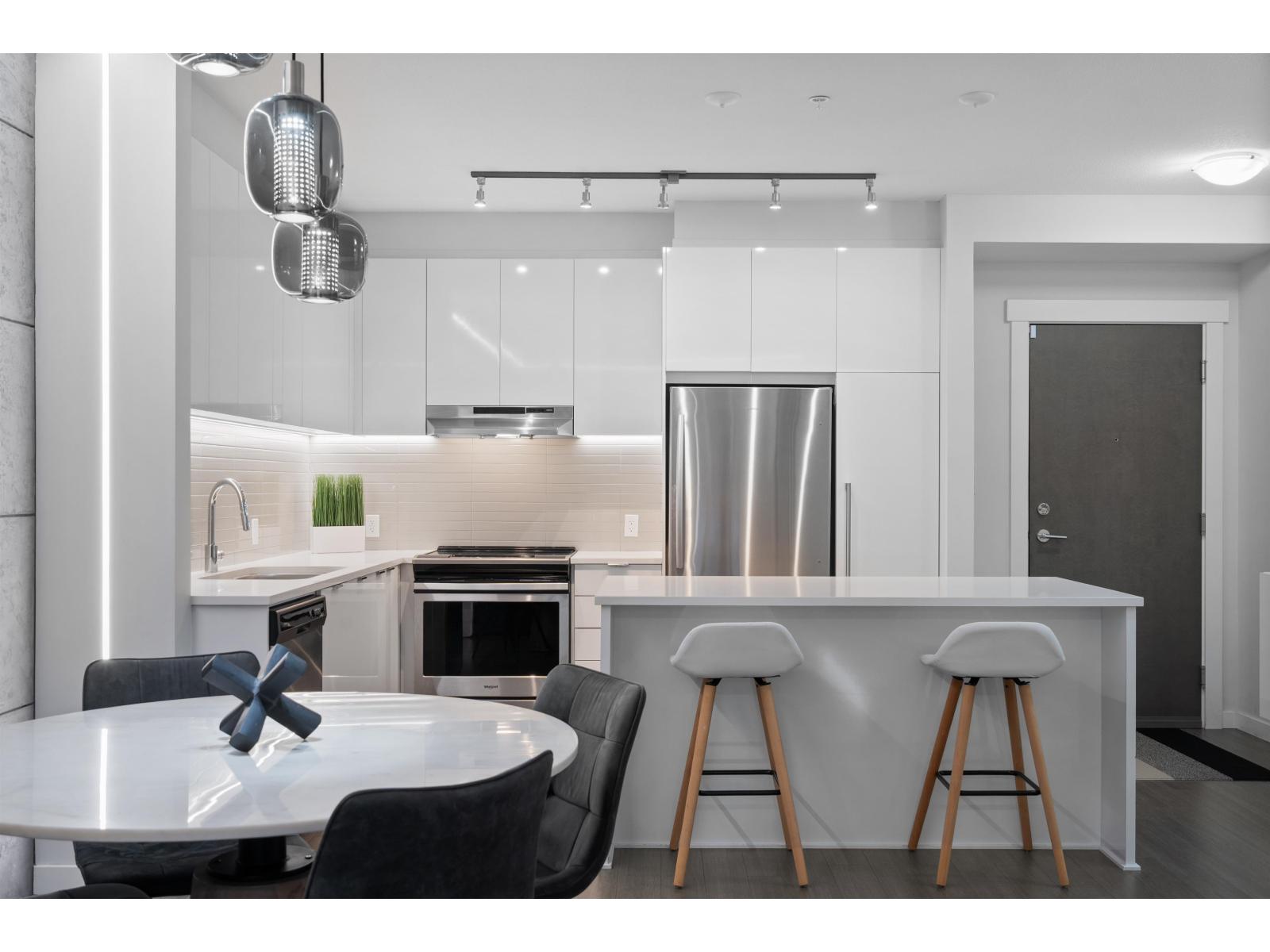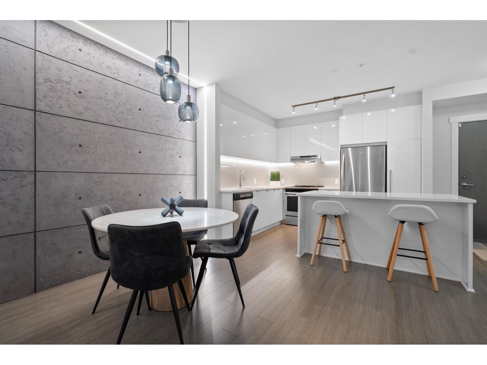 | One of the finest condos Abbotsford has to offer. 2 bed 2 bath. This modern & unique ground floor unit has been extensively upgraded & finished to a level worthy of an architectural magazine feature. Showcasing spectacular details including a custom wood-slat living room feature wall, microcement accents, LED lighting throughout the living & kitchen areas, premium blinds, sleek wall mounted cabinetry and more. The private, south facing patio is perfect for summer entertaining and seamless indoor-outdoor living. Located in Elmstone by Polygon, built in 2021, a community renowned for quality construction & thoughtful design. Residents enjoy Club West's Resort Style amenities: outdoor pool, hot tub, party room, fitness centre, guest suite, theatre, hockey room etc. Open house Sat & Sun, 2-4m (id:5347) | |||