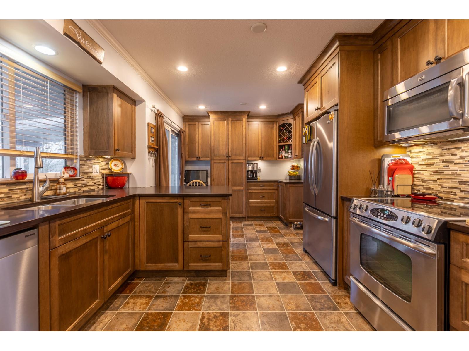 | Top Notch, East Abbotsford Cul-de-Sac home. This is the location and the set up you have been looking for. Literally watch your kids walk to Thomas Swift Elementary. When they are at home, there is a huge, flat, private, fenced yard for them to play in, as you sip coffee as you enjoy peak a boo views of North Shore Mtns on the covered sundeck. When the rains come and you are stuck inside, huge renovated kitchen allows for great cooking spaces, storage and work nooks. Enjoy a cozy night by the redesigned gas fireplace in LR. When the friends descend, there is plenty of room downstairs in the large recroom. This 3 bedroom (could be four bedroom) 2.5 bath home with a little bit of work does lend itself to extra accommodation. Lots of parking on the driveway with extra parking pad. (id:5347) | |||